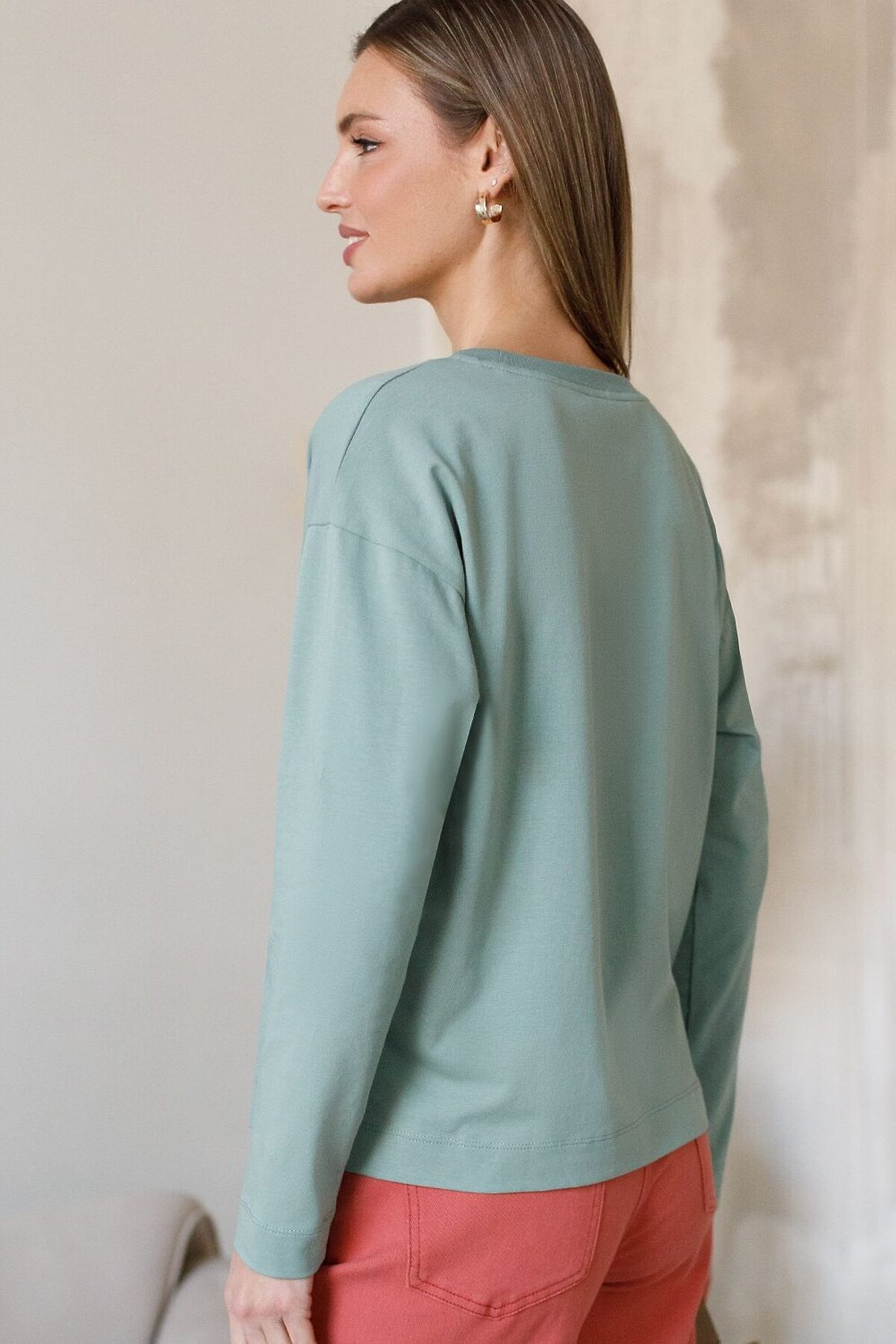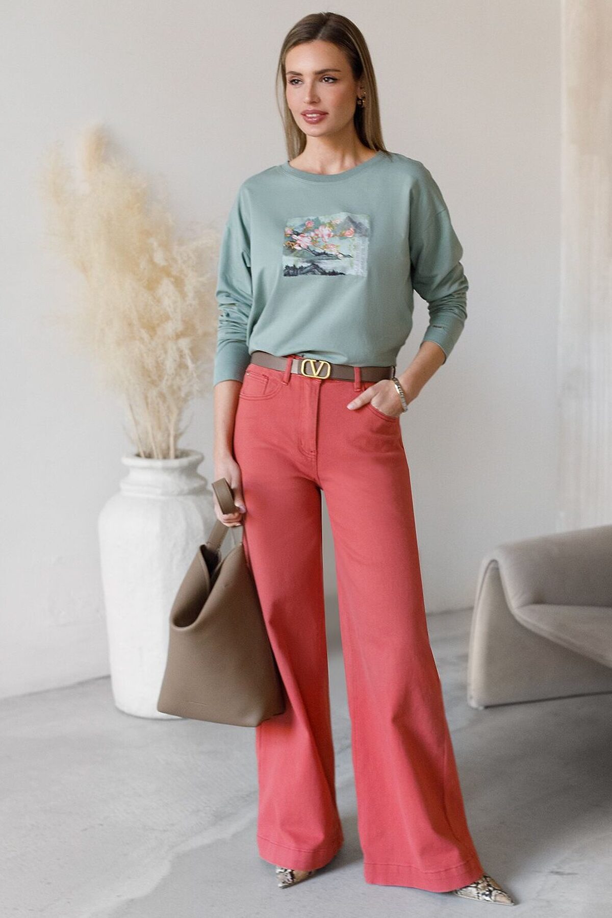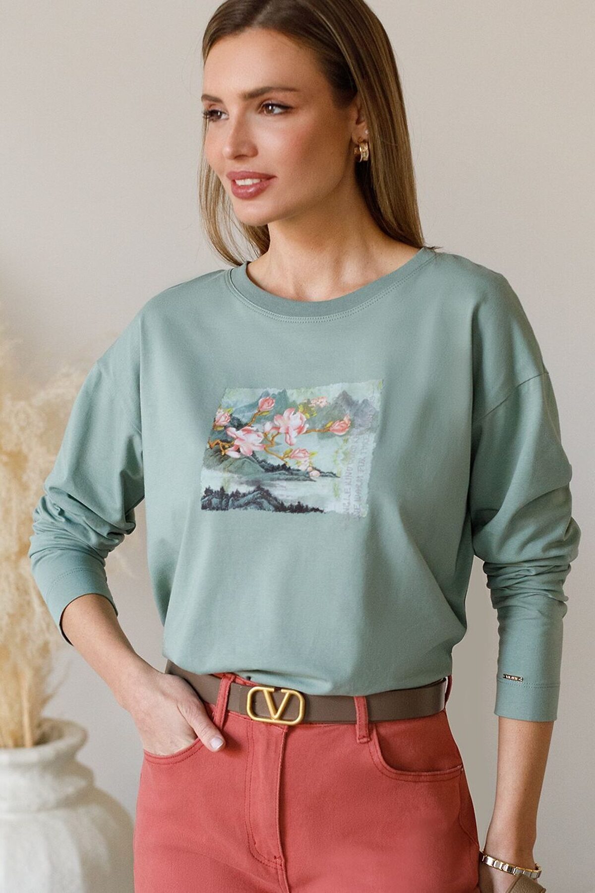 Лонгслив с принтом из премиального хлопка с эластаном VILATTE, св.оливковый_пейзаж