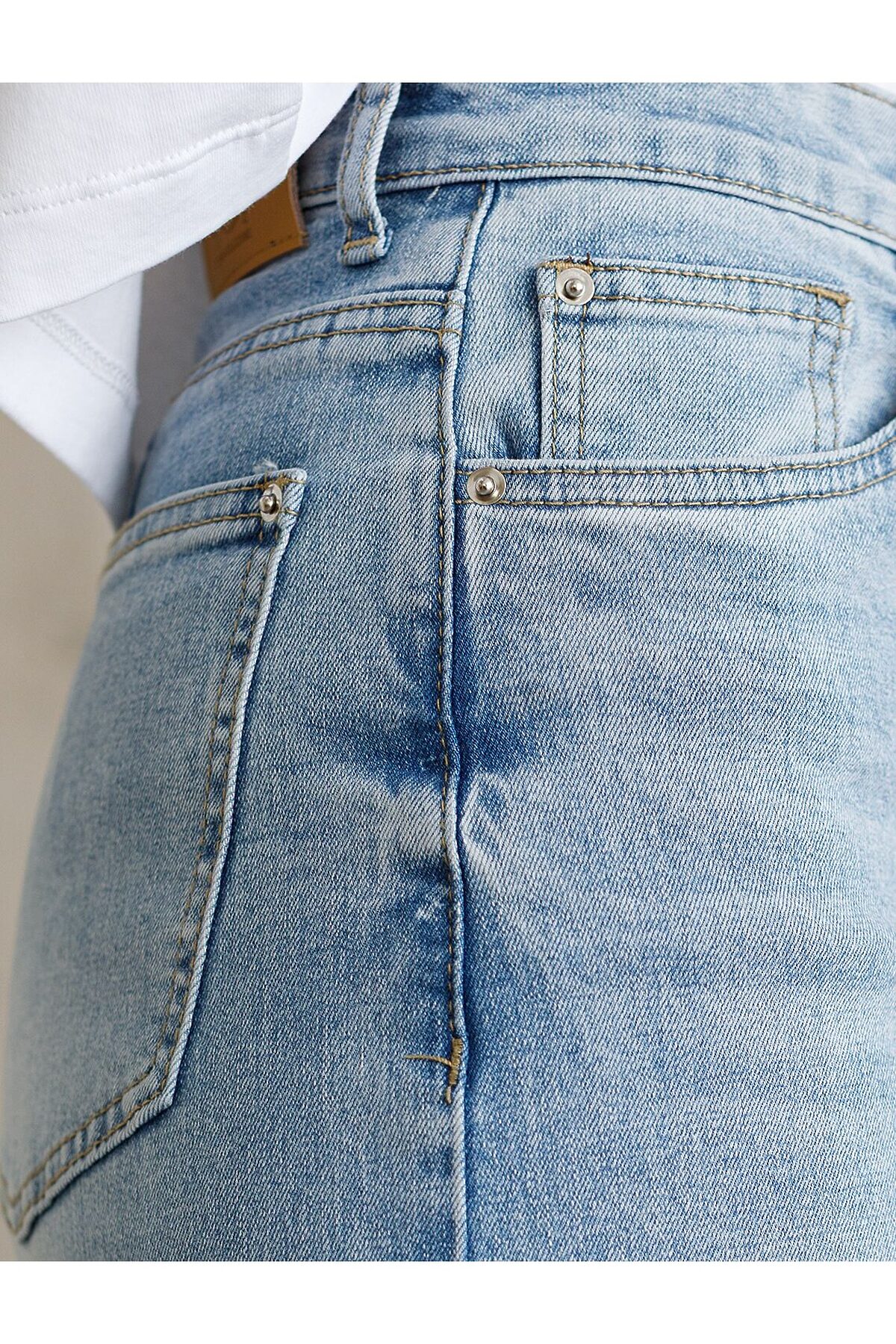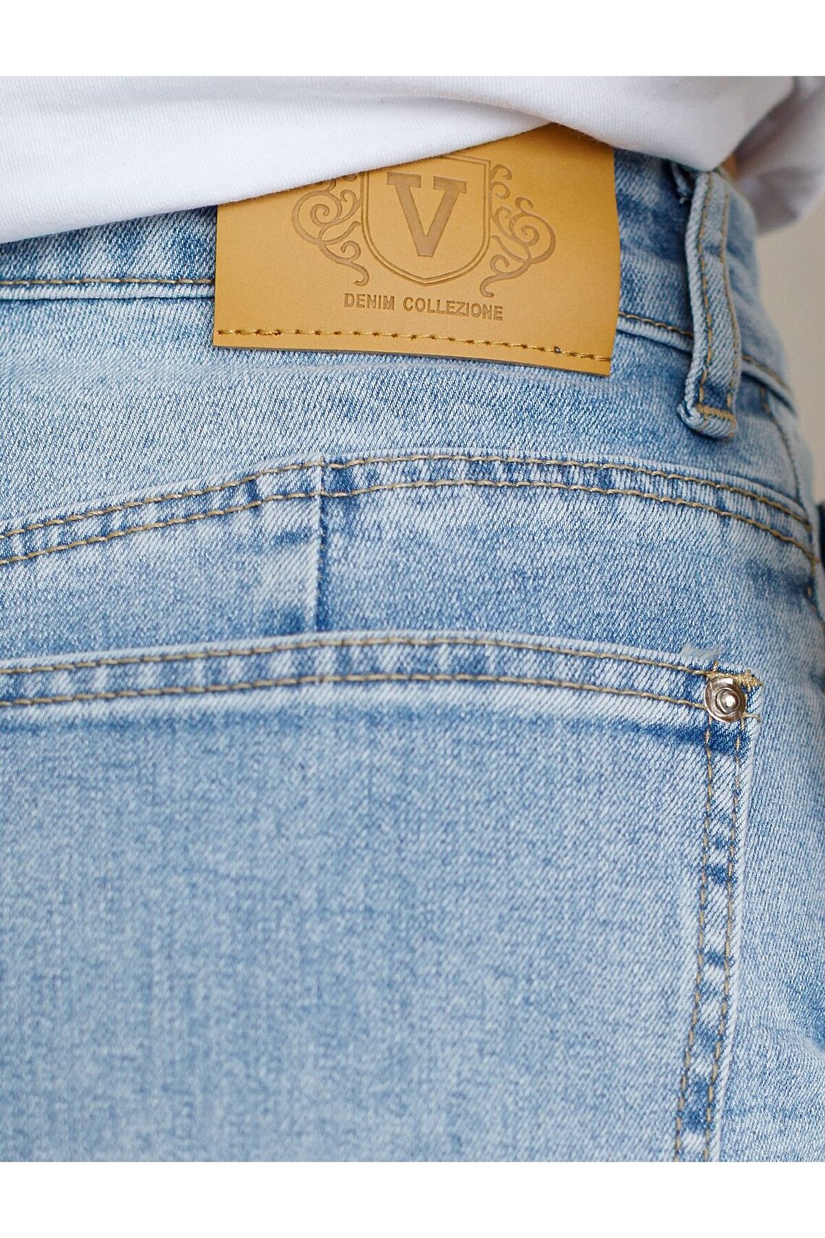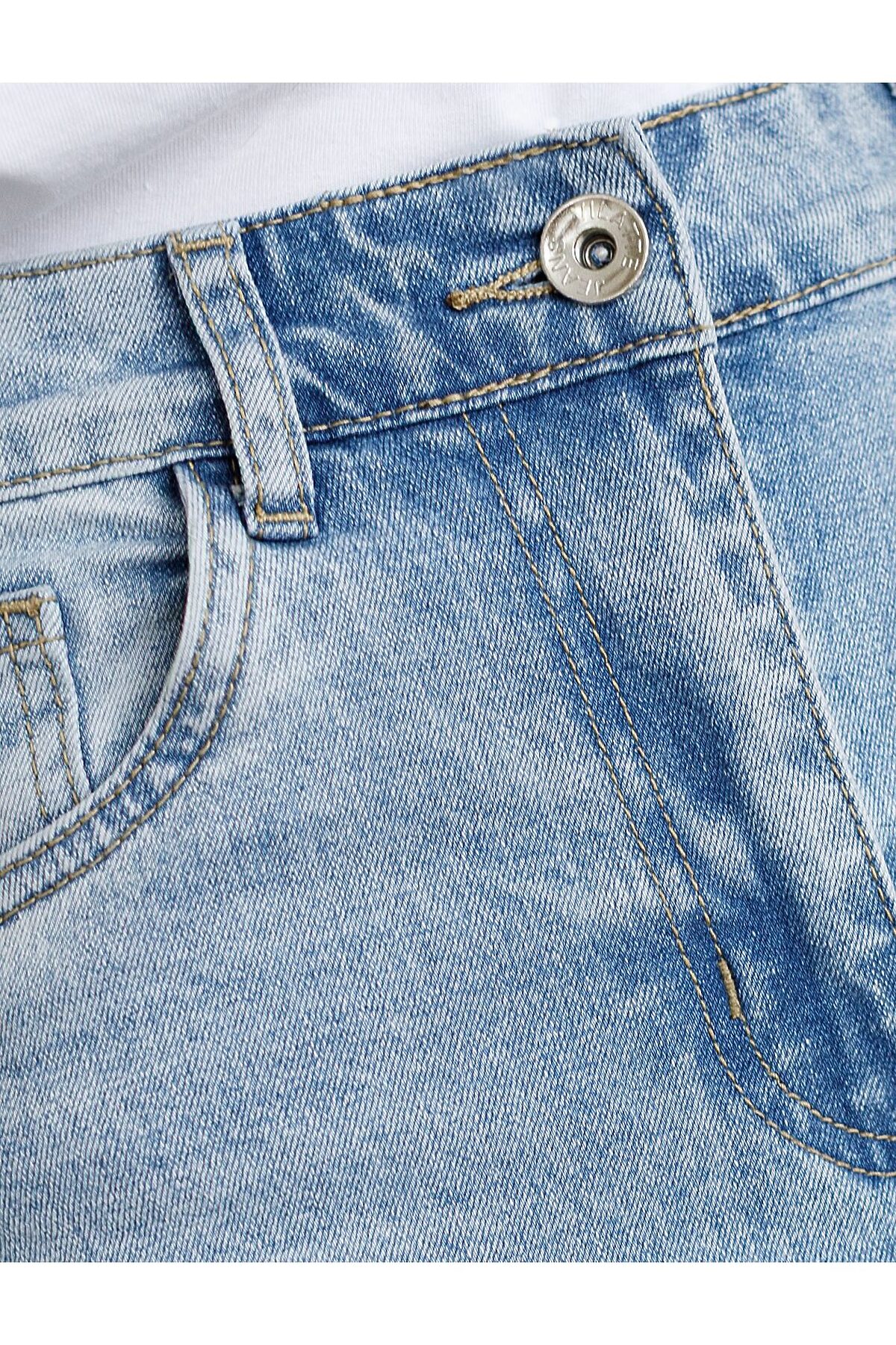 Джинсы трубы с декоративной стиркой из эластичного плотного денима VILATTE, голубой