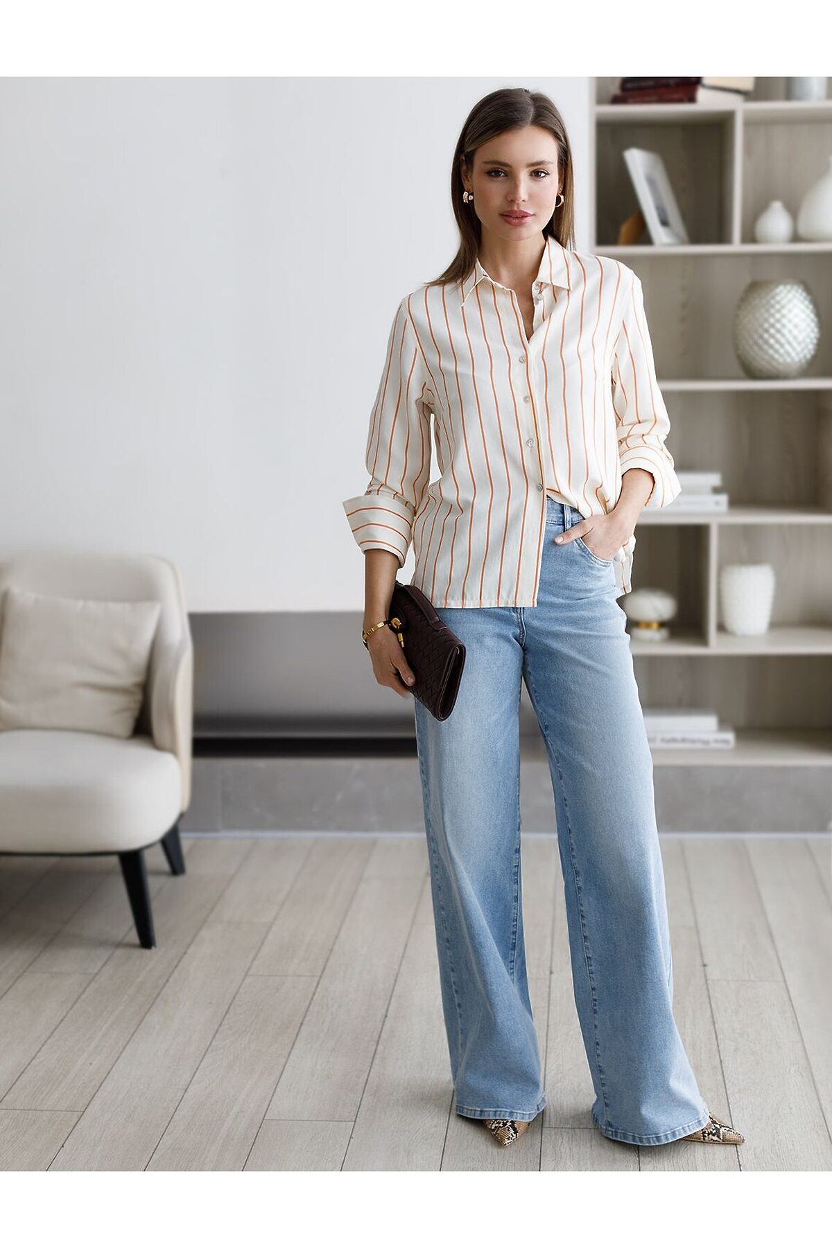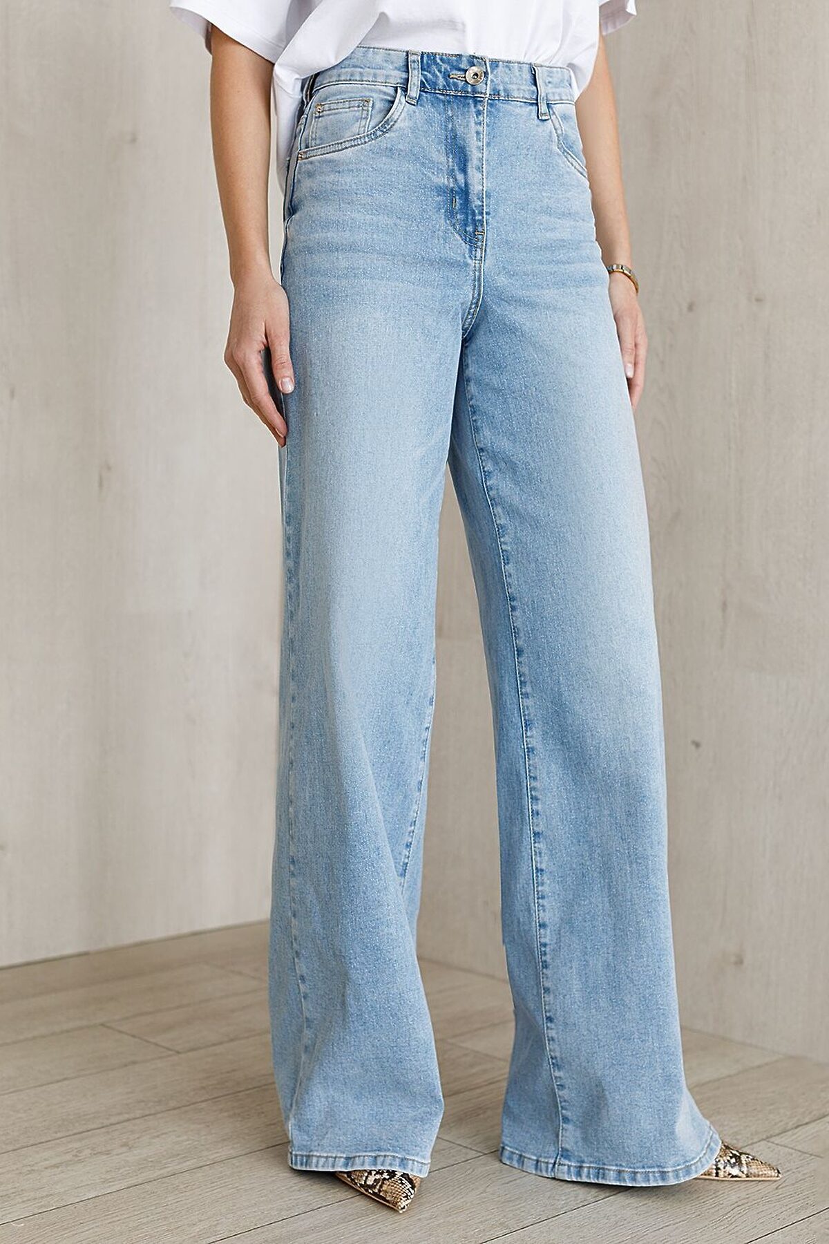 Джинсы трубы голубого цвета выполнены из эластичного денима плотностью 15,6 OZ - четкий силуэт и самый лучший вариант для прохладной погоды. После пошива изделие подвергли специальному виду вошинга — salt-stone washing (солт-стоун вошинг), что дословно значит стирка с каменной солью. Такой вид вошинга позволяет получить стильные потертости на голубых оттенках денима. Джинсы прямого кроя визуально вытягивают силуэт. Широкая размерная линейка подходит для разных типов фигур: свободные джинсы комфортны как для обладательниц пышных форм, так и для худеньких. Плотные джинсы с эластаном идеально держат форму даже при активном движении и не вытягиваются после долгой носки. Качественная фурнитура и нашивка из эко-кожи с логотипом бренда делают эти джинсы премиальными. Широкий крой добавляет актуальности — такие джинсы отлично сочетаются как с обувью на каблуке, так и на плоском ходу. Благодаря универсальному дизайну джинсы легко комбинируется с разными элементами гардероба. Рекомендуем сочетать с вртикулами: D51.034, D51.035