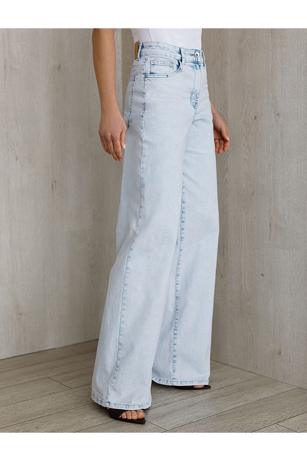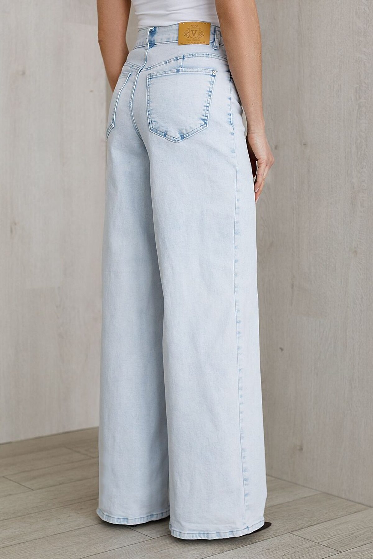 Джинсы трубы светло-голубого цвета выполнены из эластичного денима плотностью 13,7 OZ - классическая структура, которая отлично держит форму.и подчеркивает фигуру. После пошива изделие подвергли специальному виду вошинга — salt-stone washing (солт-стоун вошинг), что дословно значит стирка с каменной солью. Такой вид вошинга позволяет получить стильные потертости на голубых оттенках денима. Джинсы прямого кроя визуально вытягивают силуэт, благодаря эластану в составе аккуратно садятся на любую фигуру и обеспечивают максимальный комфорт в течение дня, не сковывая движения. Широкая размерная линейка подходит для разных типов фигур: свободные джинсы комфортны как для обладательниц пышных форм, так и для худеньких. Плотные джинсы идеально держат форму даже при активном движении и не вытягиваются после долгой носки. Качественная фурнитура и нашивка из эко-кожи с логотипом бренда делают эти джинсы премиальными. Широкий крой добавляет актуальности — такие джинсы отлично сочетаются как с обувью на каблуке, так и на плоском ходу. Благодаря универсальному дизайну джинсы легко комбинируется с разными элементами гардероба. Рекомендуем сочетать с вртикулами: D51.034, D51.035