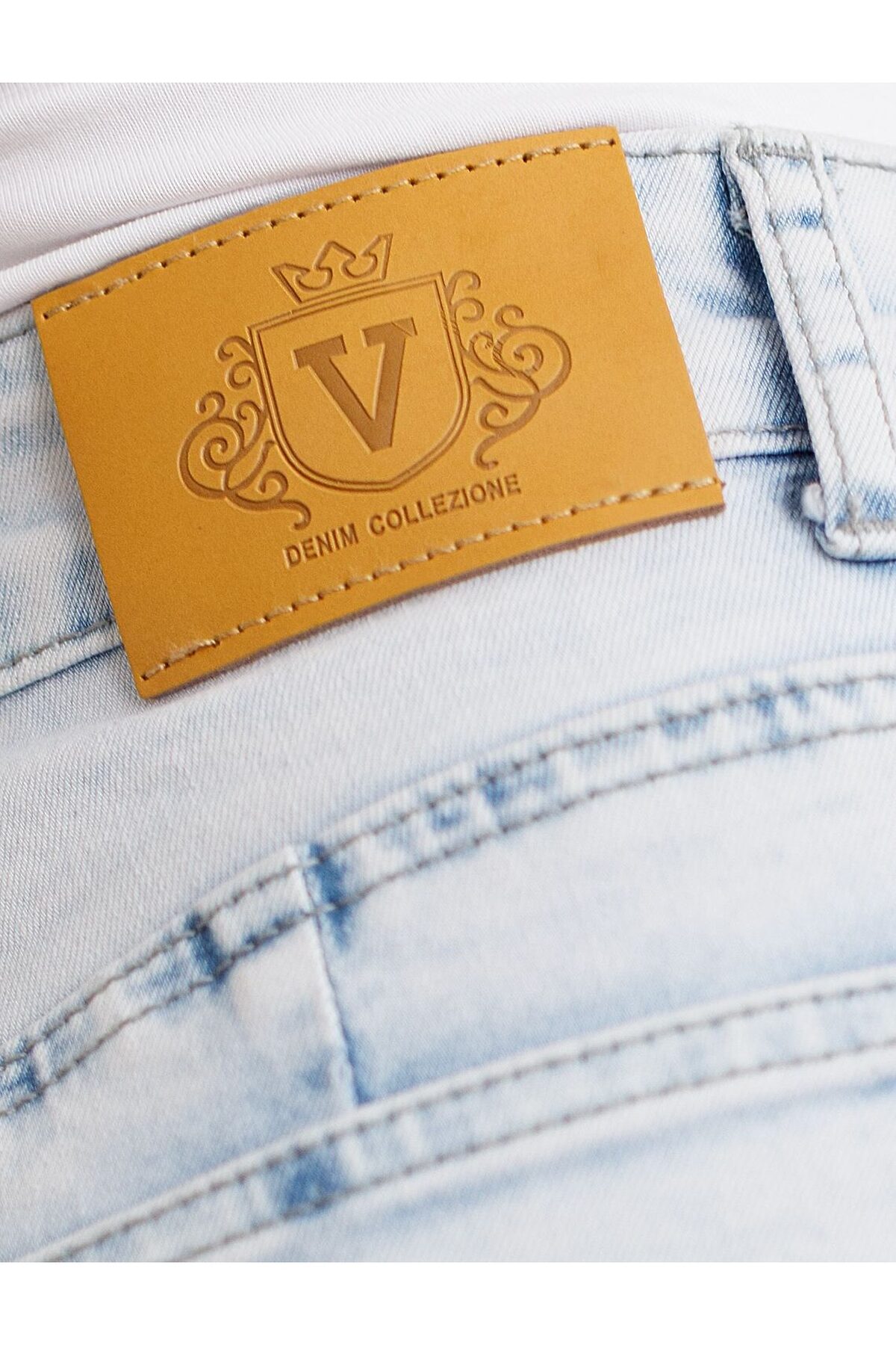 Джинсы трубы c декоративной стиркой из эластичного плотного денима VILATTE, светло-голубой