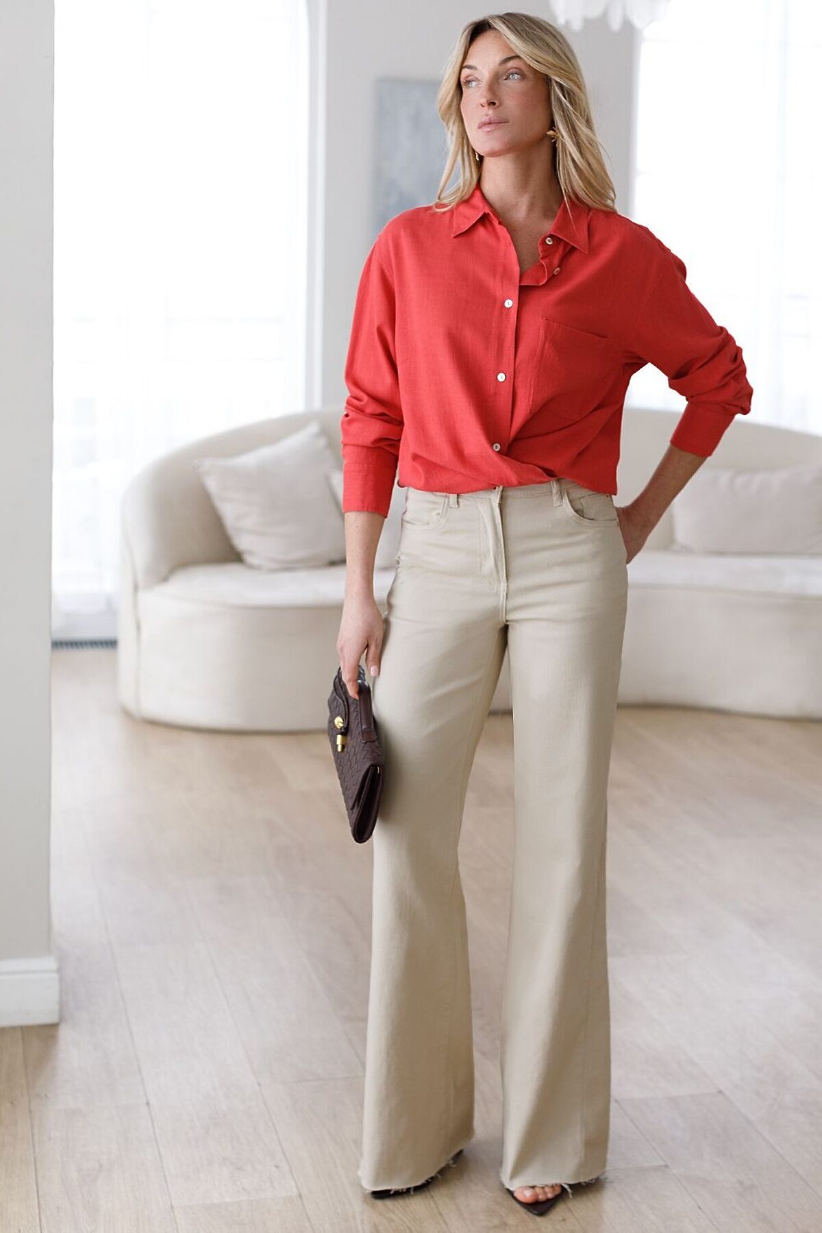 Джинсы клеш от колена с бежевого цвета выполнены из эластичного денима плотностью 11 OZ,11 OZ - легкость и свобода движений, подходят для активного дня. Эта модель — воплощение стиля гранж. Главная фишка — эффектные прорези под передним карманом и на заднем кармане, которые добавляют образу смелости. Дизайн дополнен необработанным нижним краем. Клеш от колена, который создан с помощью клиньев, выгодно вытягивает силуэт, визуально удлиняет ноги и подчеркивает округлые бедра, создавая женственный образ без лишних усилий. Джинсы подходят на большие размеры, позволяя чувствовать себя уверенно, специальный крой выгодно выделяет достоинства и мягко маскирует возможные нюансы фигуры. Такие стильные джинсы легко впишутся в гардероб, дополнят повседневный расслабленный или более яркий образ. Джинсы подходят тем, кто ценит уверенность в себе и всегда выбирает лучшее. Рекомендуем сочетать с артикулами: D51.035, D51.034