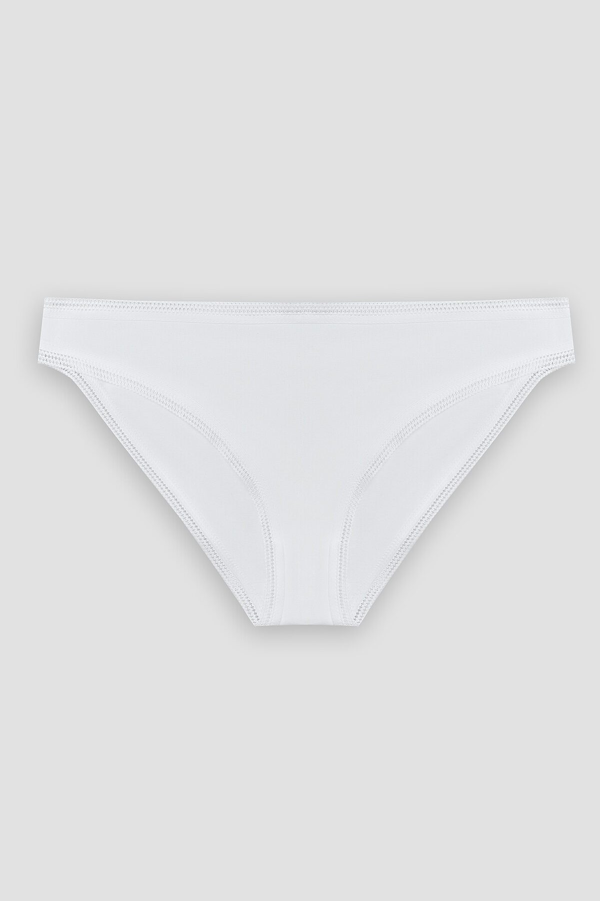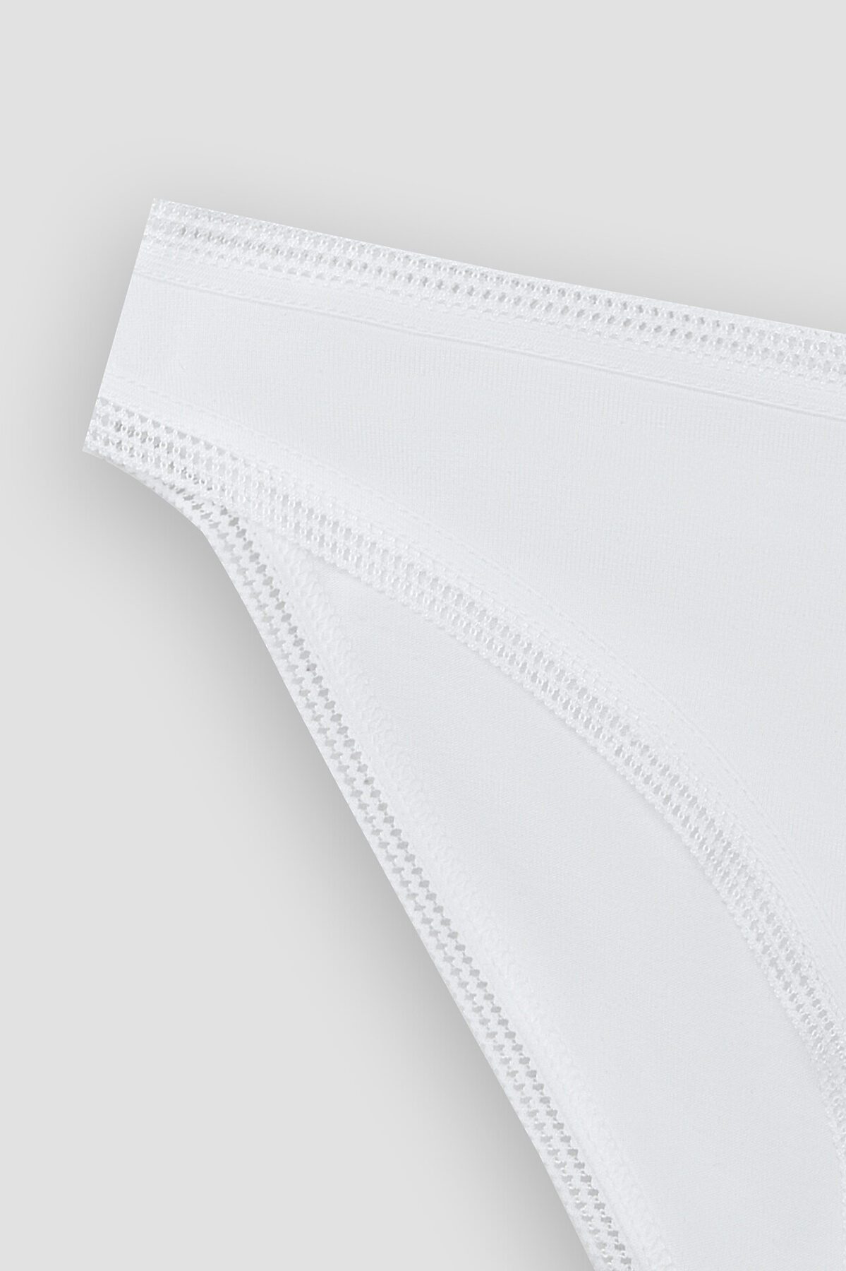 Трусы женские слипы со средней посадкой из кулирки. Передняя деталь цельная. Нижние и верхний срезы обработаны эластичной тесьмой 14 мм (декоративная Dt12-14, девсел 1294К). Нижняя ластовица отлетная по переднему срезу, выполнена из основного полотна.