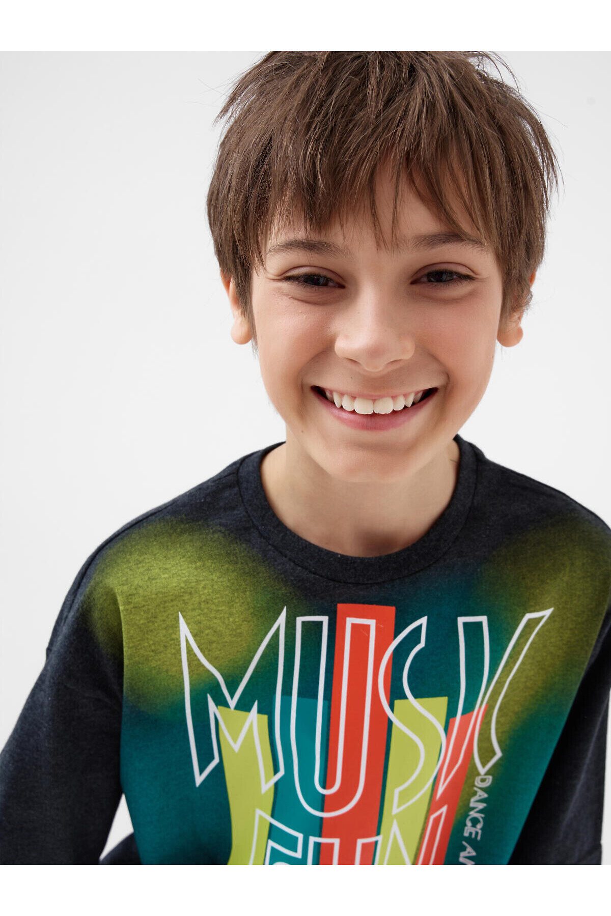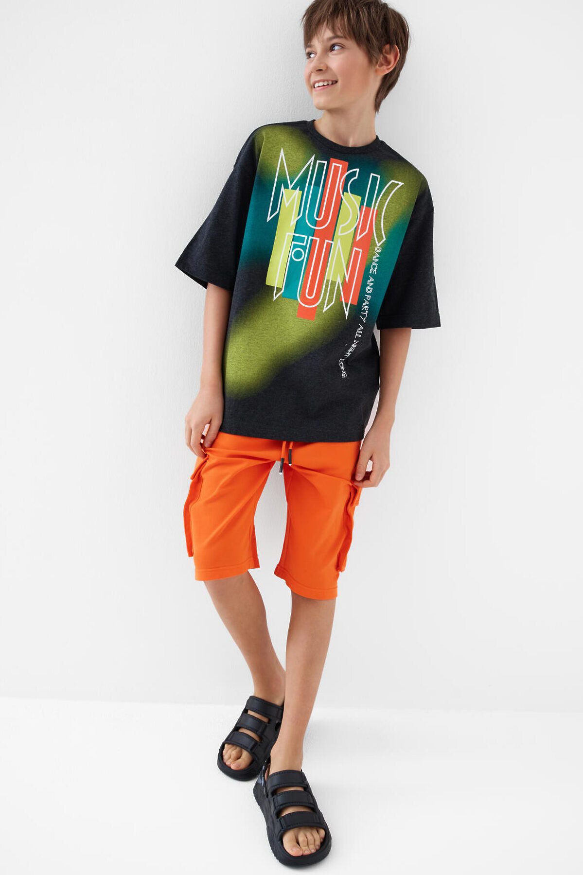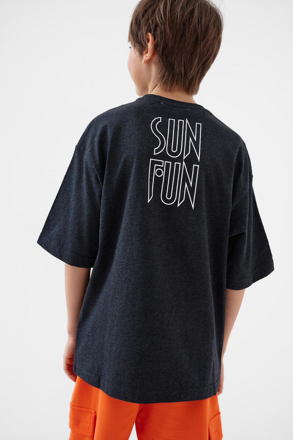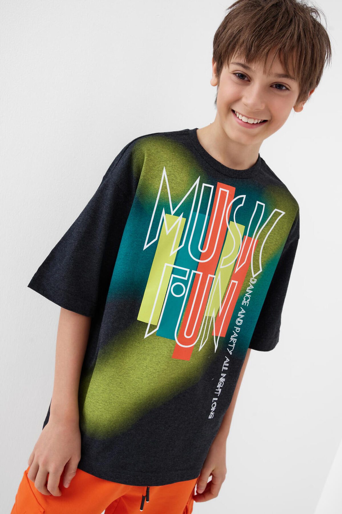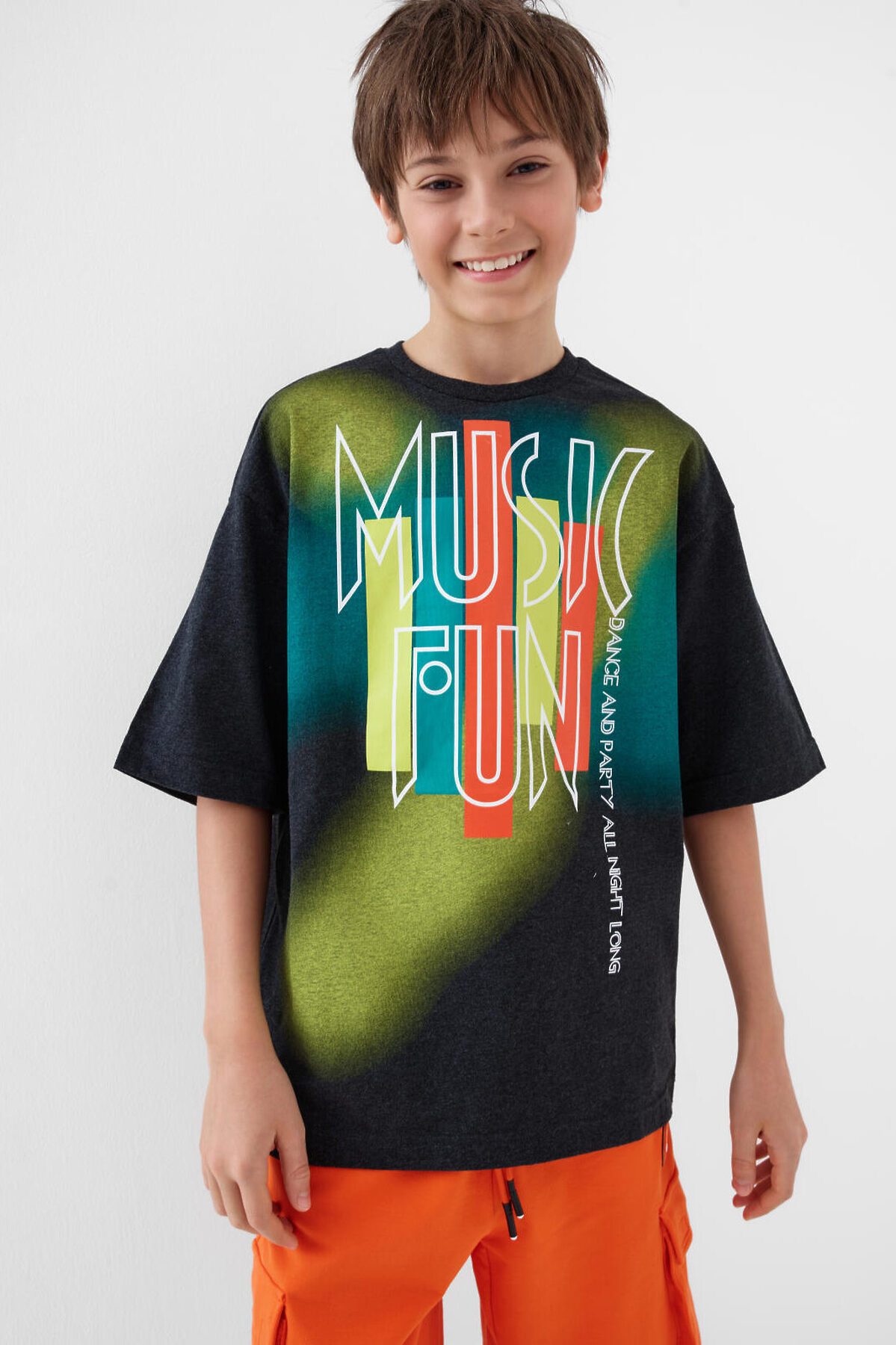 Футболка оверсайз для мальчика подростка. Модель выполнена из эластичного хлопкового трикотажа джерси. Спереди и по спинке расположен крупный принт. Горловина круглая, обработана эластичным рибом.