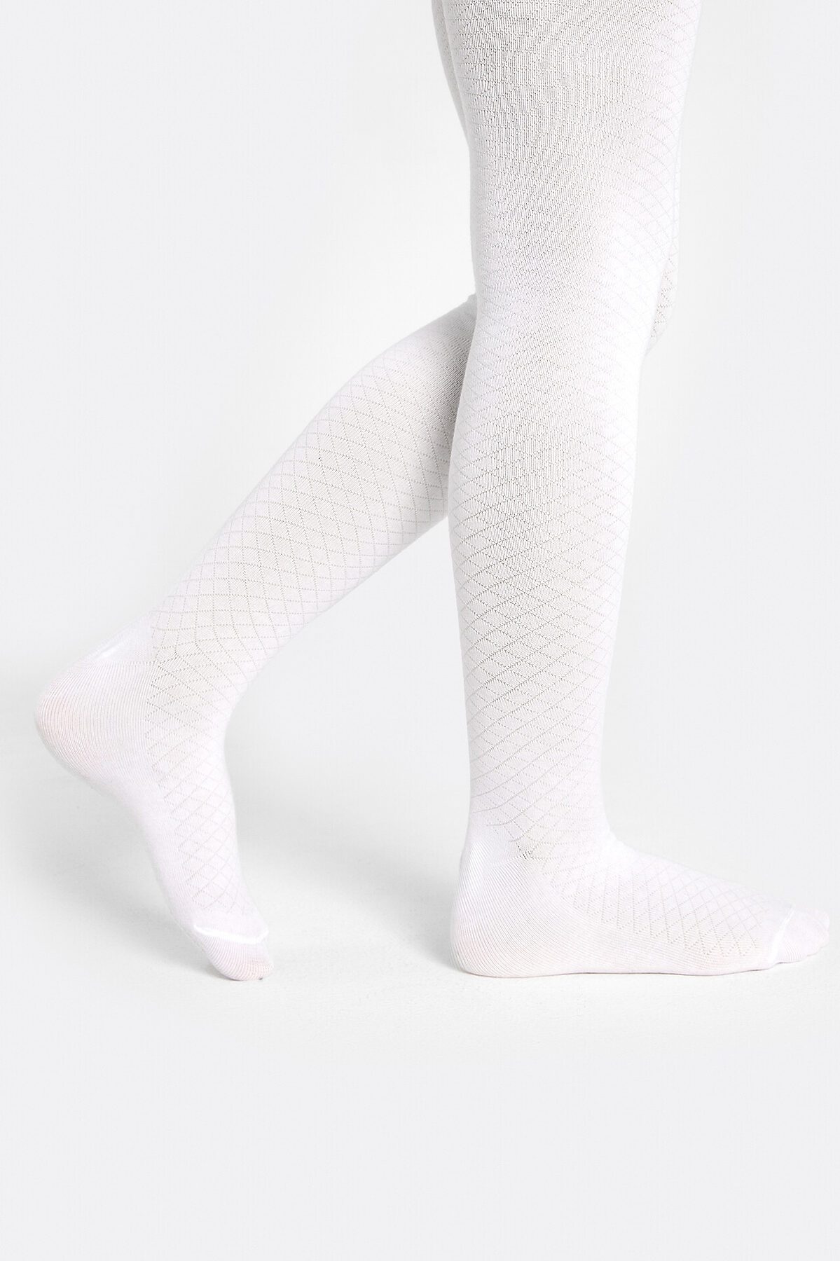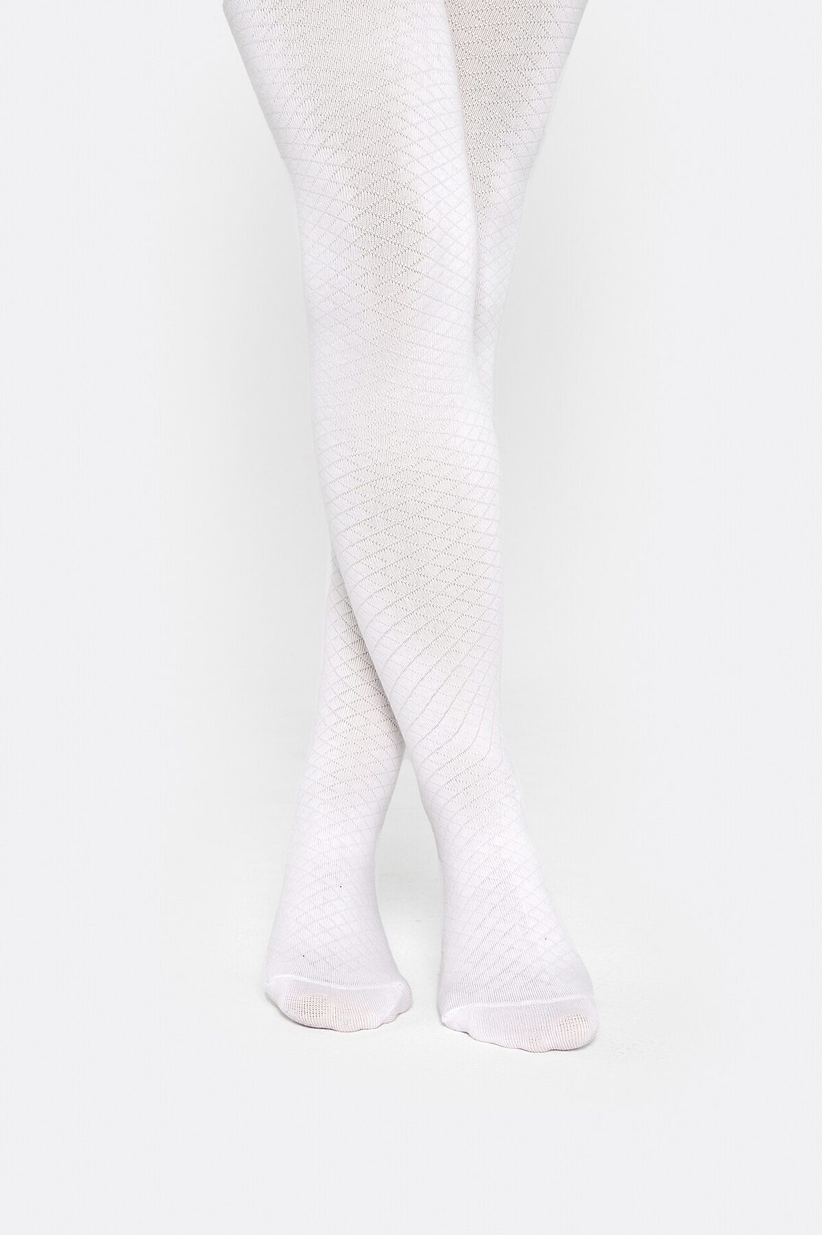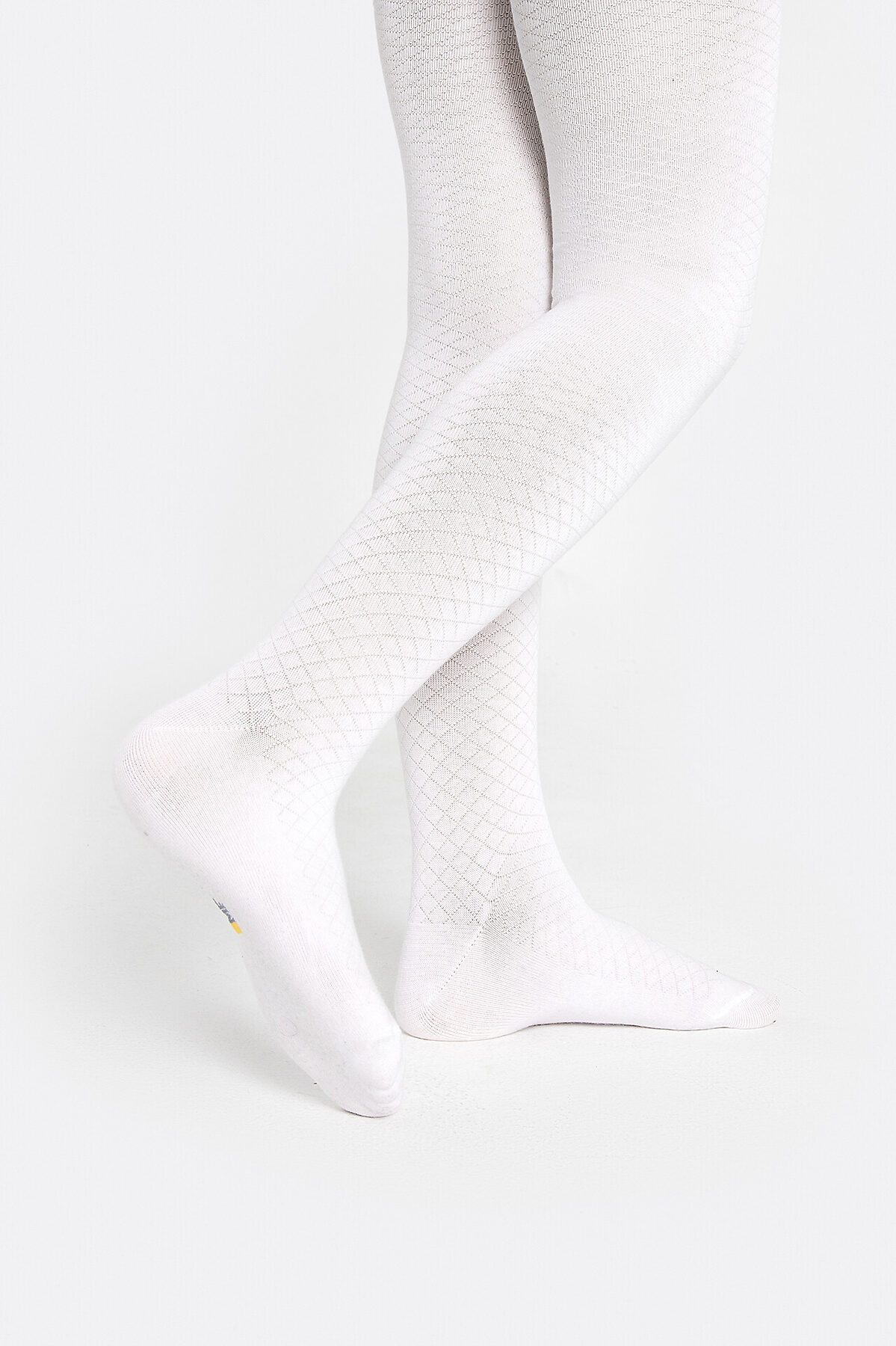 Рис.2392 Колготки гладкие с рисунком выполненым перекидным переплетением, в виде диоганальной сетки