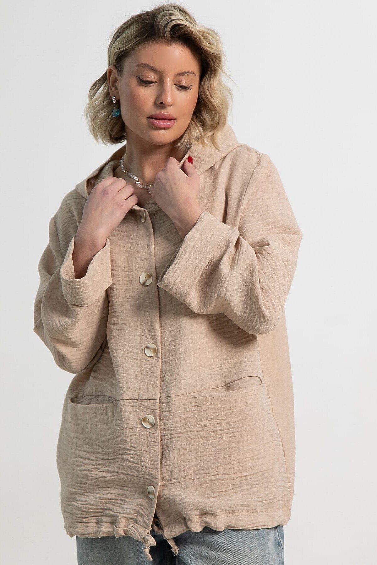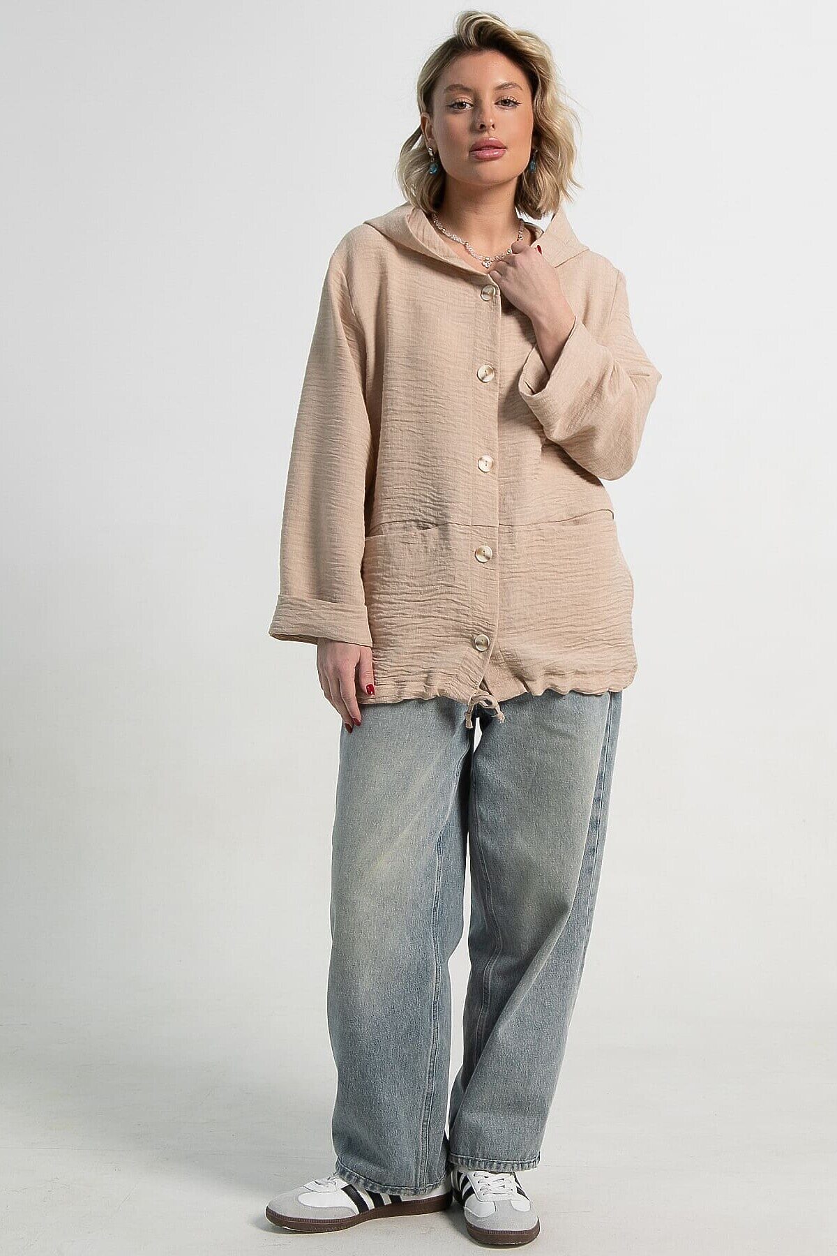 Пыльник абсолютно справедливо стал незаменимой вещью гардероба многих женщин. Такой предмет гардероба подходит для очень тёплой весны или лета, когда на плечи нужно набросить тонкий второй слой одежды. Предлагаем летний пыльник прямого кроя, застёжка на пуговицах, с капюшоном. По низу изделия кулиска, свободные рукава 7/8 с манжетами, два кармана в горизонтальном шве на полочке. Достаточно накинуть летний пыльник поверх обычных джинсов с футболкой — и стильный образ готов!