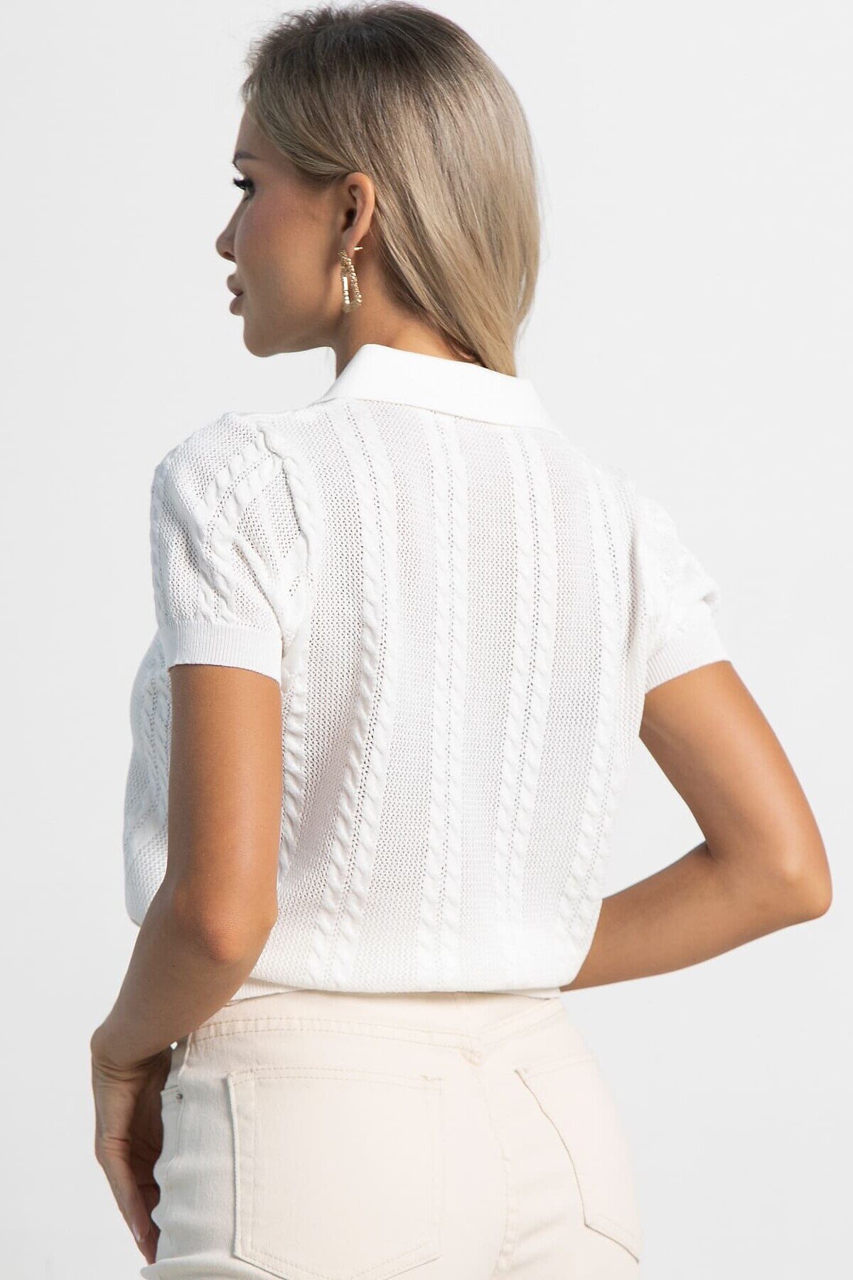 Добавьте это стильное вязаное поло в свою коллекцию и наслаждайтесь бесконечными возможностями создания модных образов! Это поло идеально подходит как для создания стильных повседневных образов, так и для дополнения более формальных нарядов. Сочетайте его с джинсами, юбками или брюками, чтобы каждый день выглядеть безупречно. Оно легко впишется в любой гардероб, подарит вам уверенность и подчеркнет вашу женственность. Идеальный выбор для современных женщин, которые ценят качество, практичность и модные тенденции.