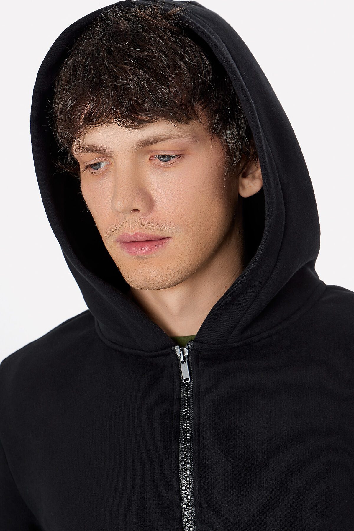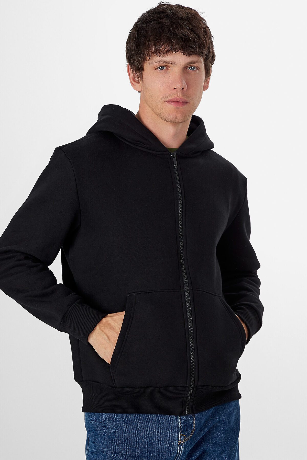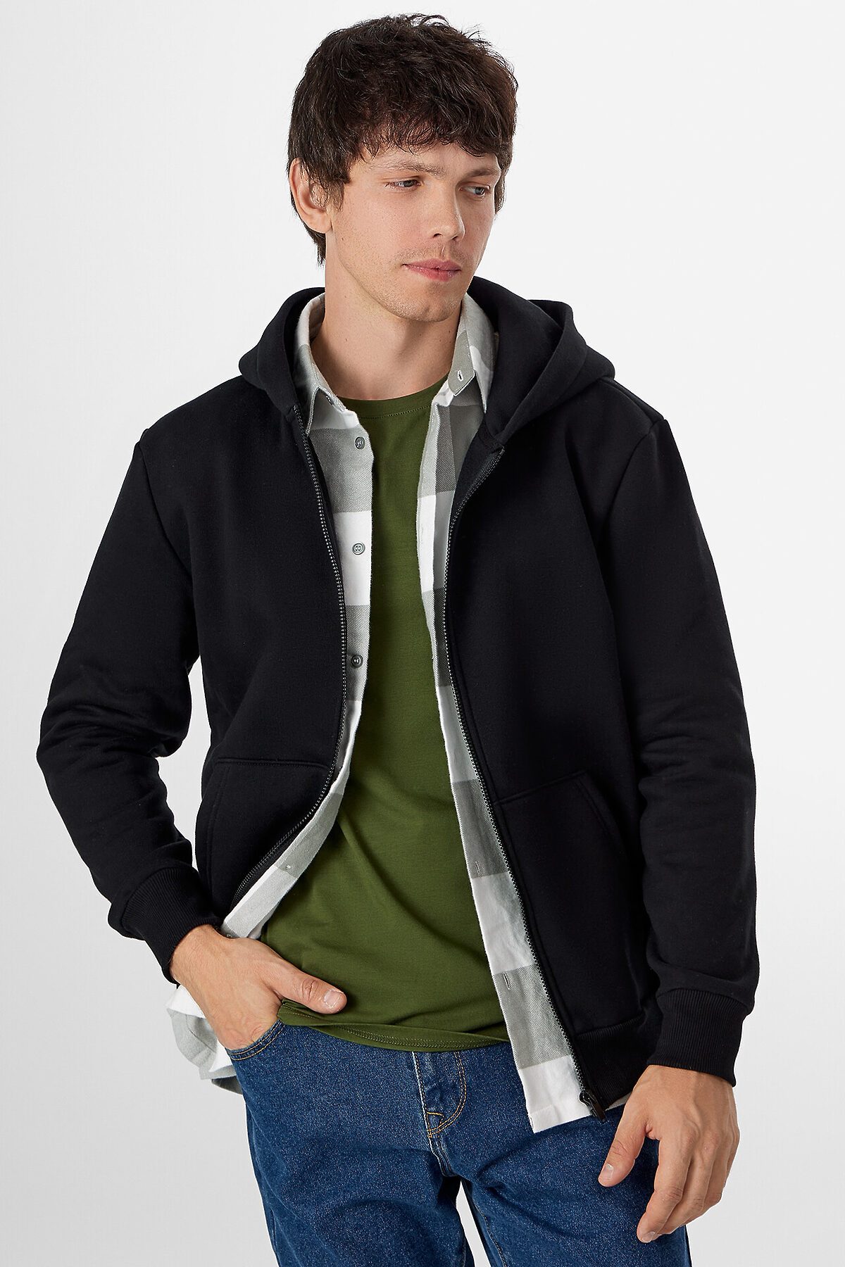 Жакет мужской на молнии из высококачественного хлопка. Материал изделия комфортный футер с подчесом. Крой свободный. Удобный карман-кенгуру, спущенная линия плеча и углубленная пройма, длинные рукава, уютный капюшон, центральная застежка на молнию –стильный вариант. Конструкция изделия хорошо продумана, в таком жакете тепло и удобно. Его можно использовать не только как повседневный, но и как одежду для занятий спортом. Дополнить легко низом из линейки базовой одежды для мужчин. Широкий размерный ряд, красивые цвета. Отлично сядет на любой тип мужской фигуры. Рекомендуем!