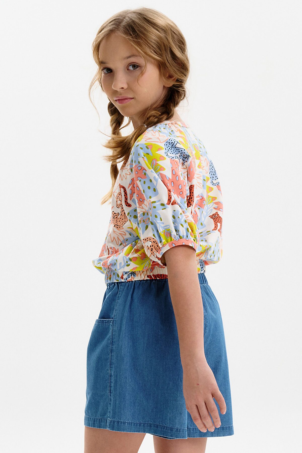 Новая модель. Мягкая трикотажная блузка для девочки из хлопка с добавлением эластана. Горловина и края рукавов аккуратно обработаны кантом в тон ткани. Рукава покроя реглан со сборкой сверху и снизу, что создаёт лёгкий объём. По низу блузки — широкая комфортная резинка, благодаря которой вещь красиво садится по фигуре.