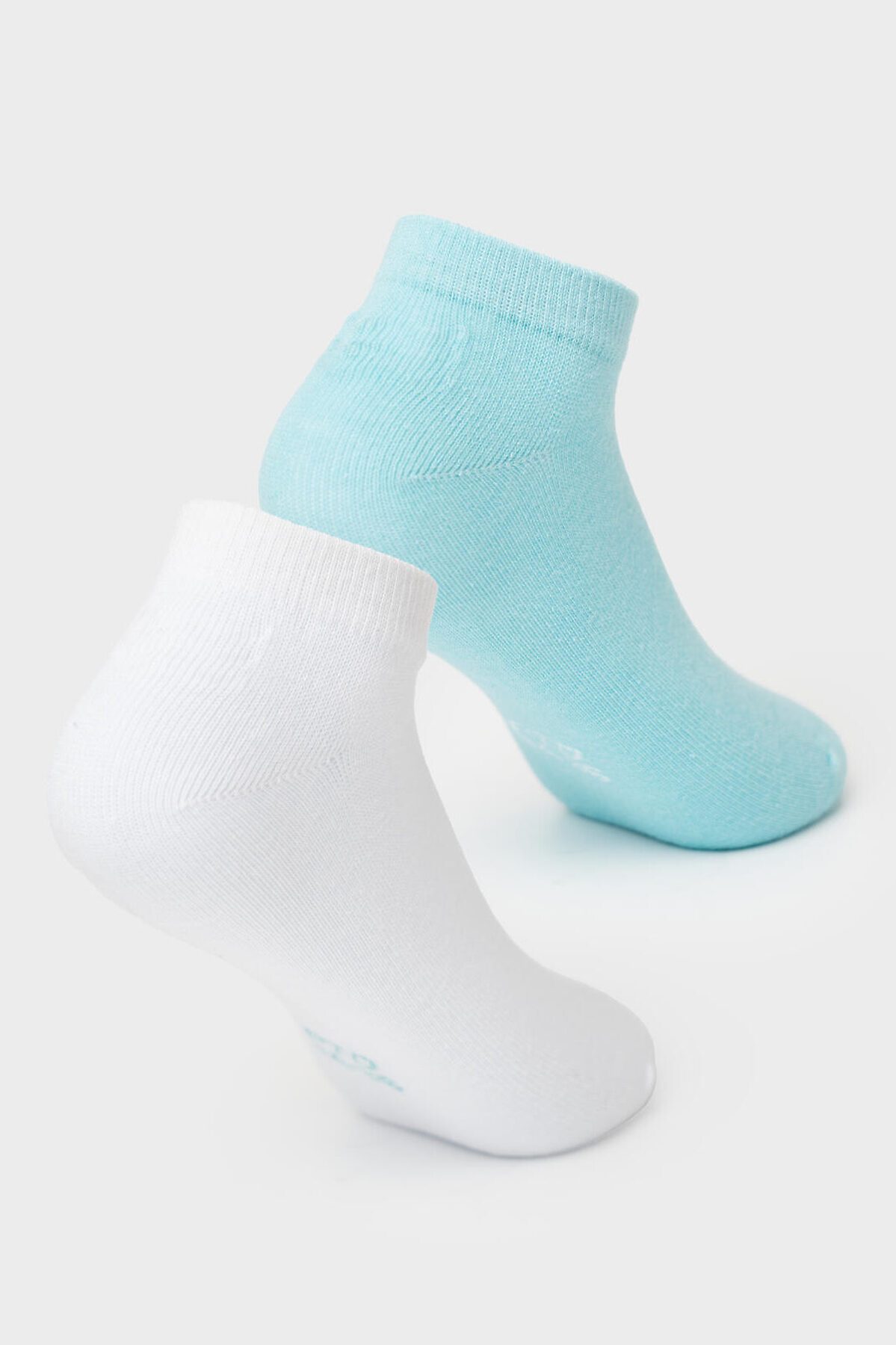 Комплект из двух пар укороченных носков для девочки подростка. Каждая пара дополнена прозрачным силиконовым принтом на пятке, который помогает носкам не сползать. Внизу стопы жаккардовая надпись с указанием размера. Материал — мягкий хлопковый трикотаж.