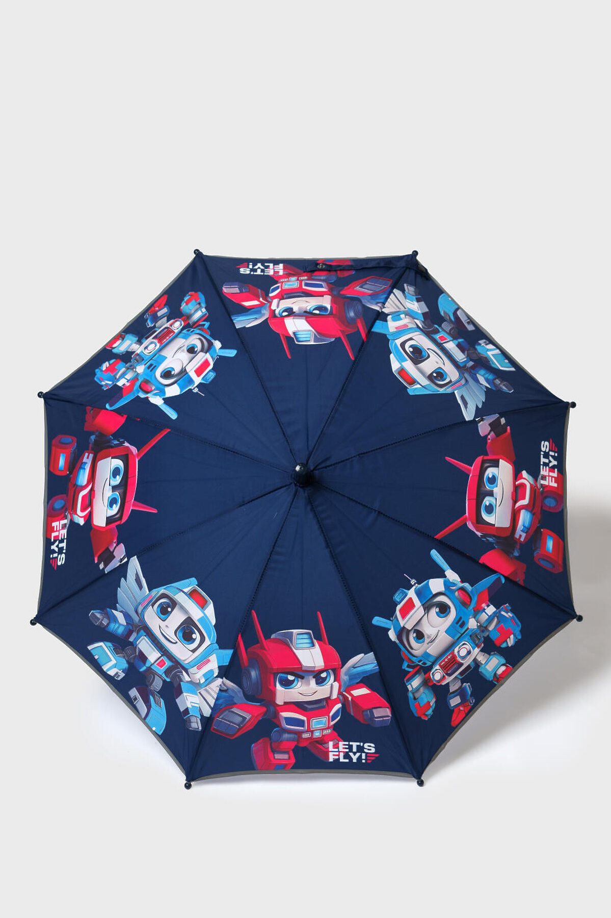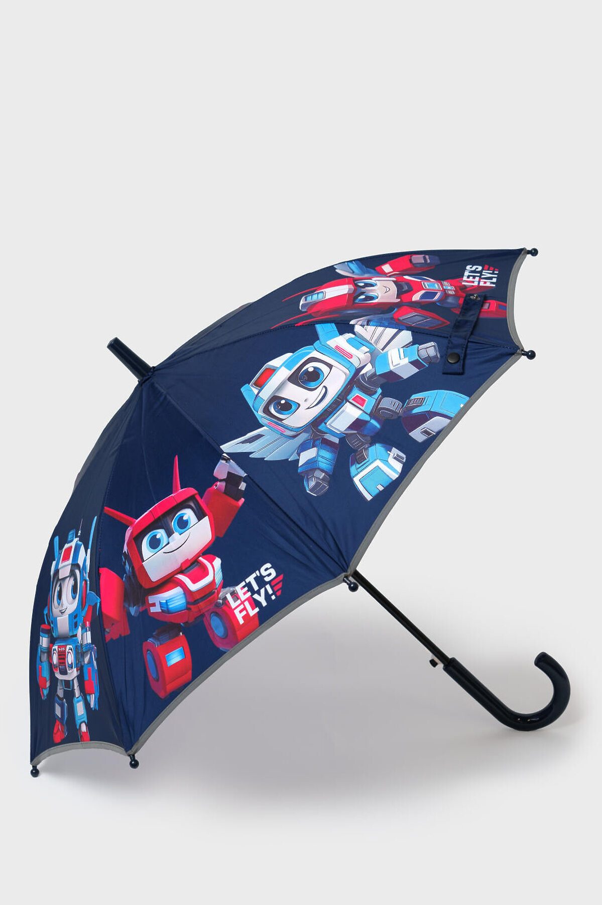 Зонт-трость для мальчика с любимыми героями мальчишек - роботами-трансформерами. Зонт идеально сочетается с резиновыми сапогами и дождевиком из коллекции. По краю зонта имеется светоотражающая окантовка, поэтому в темное время суток ребенка с зонтом хорошо видно на дороге. Длина 67 см, диаметр купола 76 см. Механизм складывания - полуавтомат.