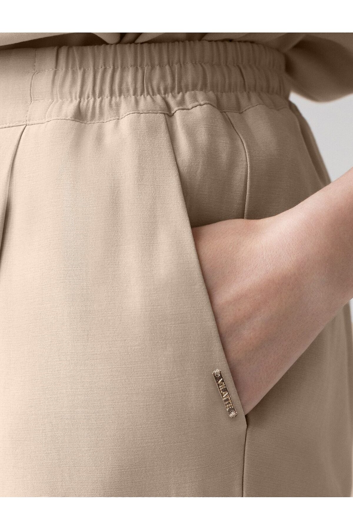 Брюки бананы с поясом на резинке из плотного лиоцелла VILATTE, светло-бежевый