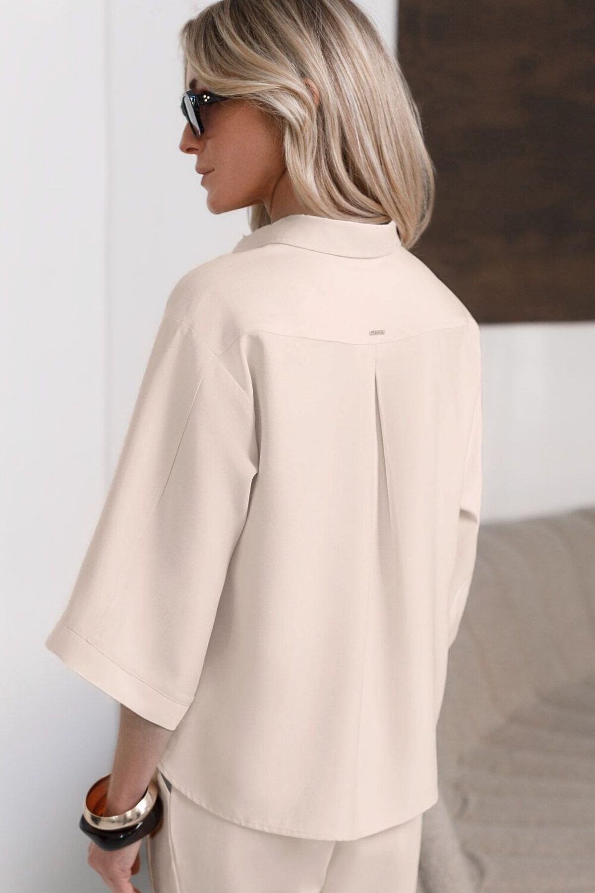 Стильная блузка кокосово-молочного цвета выполнена из плотного лиоцелла. Лиоцелл это более дорогой и экологичный вариант вискозы, очень прочный и шелковистый. Модель дополнена широкими рукавами длиной 3/4, создающими модный акцент. Классический отложной воротник придает блузке официальность и идеально подходит для ношения, где требуется офисный дресс-код. А лаконичные лампасы вдоль рукавов в тон основного цвета подчеркивают трендовый характер блузки. Это ненавязчивый, но заметный акцент, который выделяет модель среди стандартных классических блузок. Свободный крой не сковывает движений и отлично садится по фигуре даже на большие размеры, скрывая возможные недостатки. Эта легкая рубашка с застежкой на пуговицы идеальный выбор для комфорта и стиля в теплое время года, она идеально подойдет для любого повода. Реомендуем сочетать с артикулами: D24.310, D24.311, D26.203