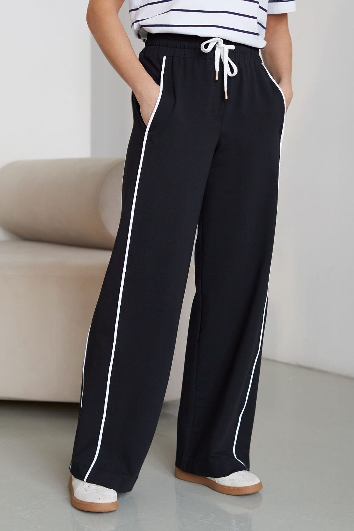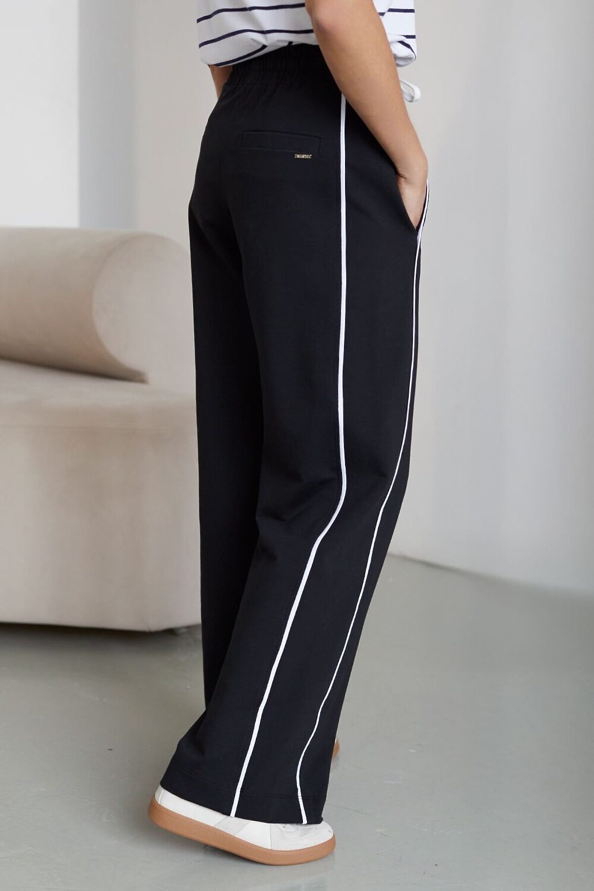 Прямые брюки с лампасами из эластичного футера двухнитки без начеса VILATTE, черный
