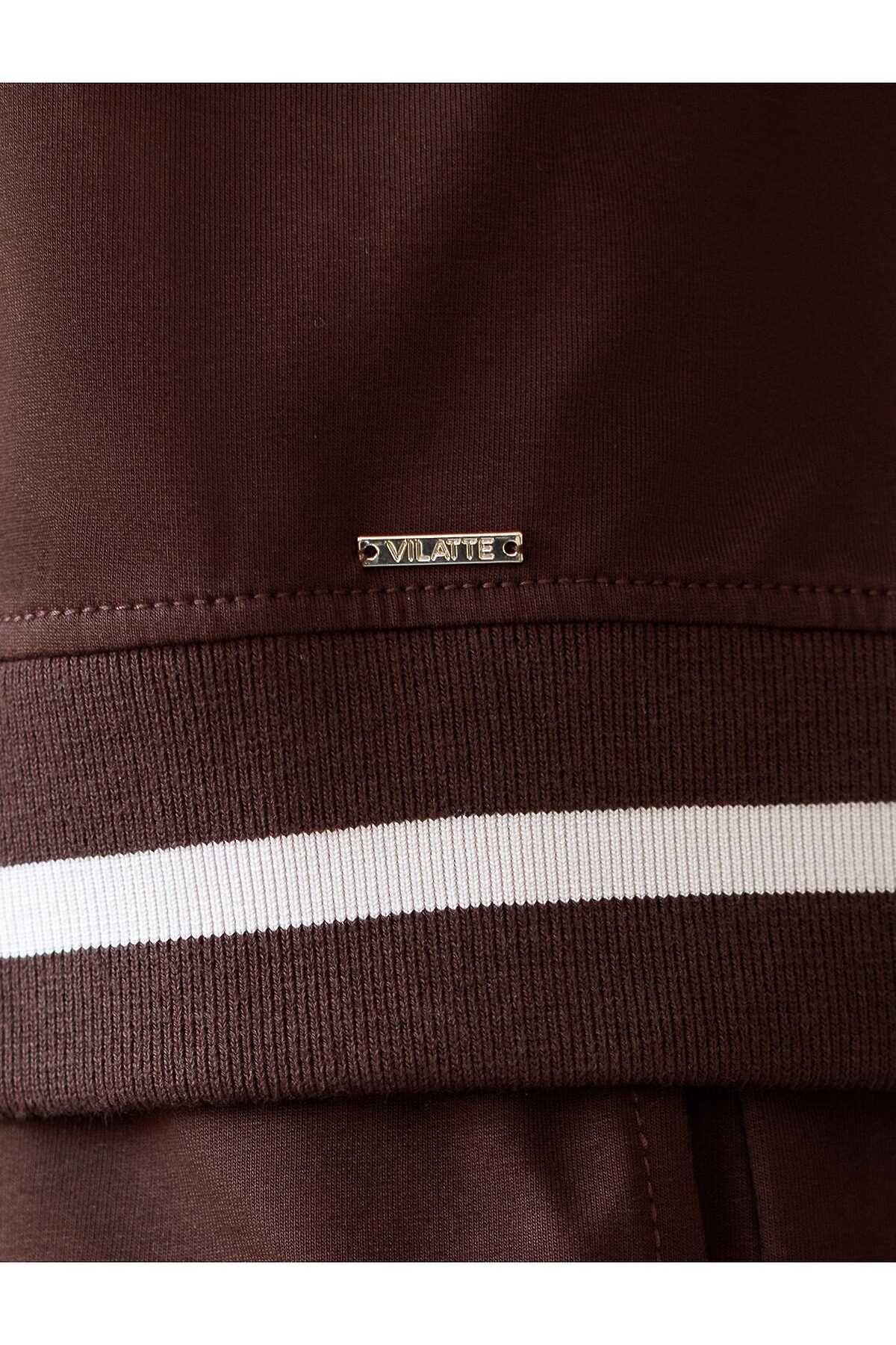 Свитшот среднего объема с V вырезом и принтом из футера двухнитки с эластаном VILATTE, коричневый