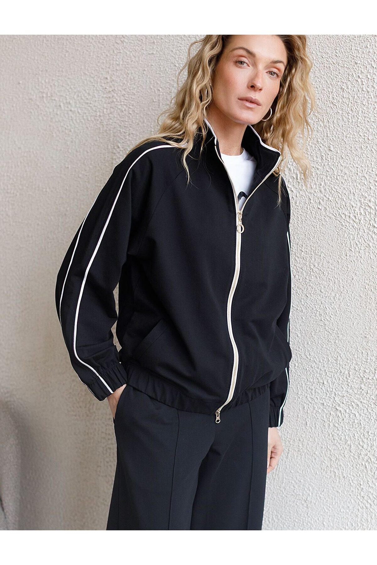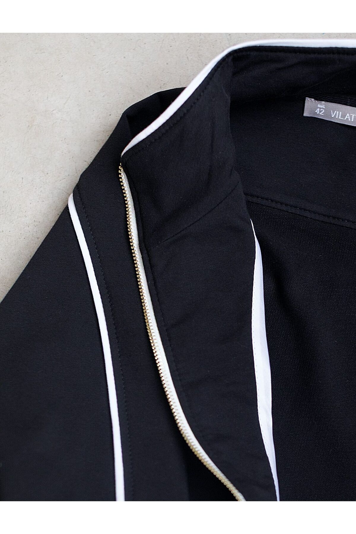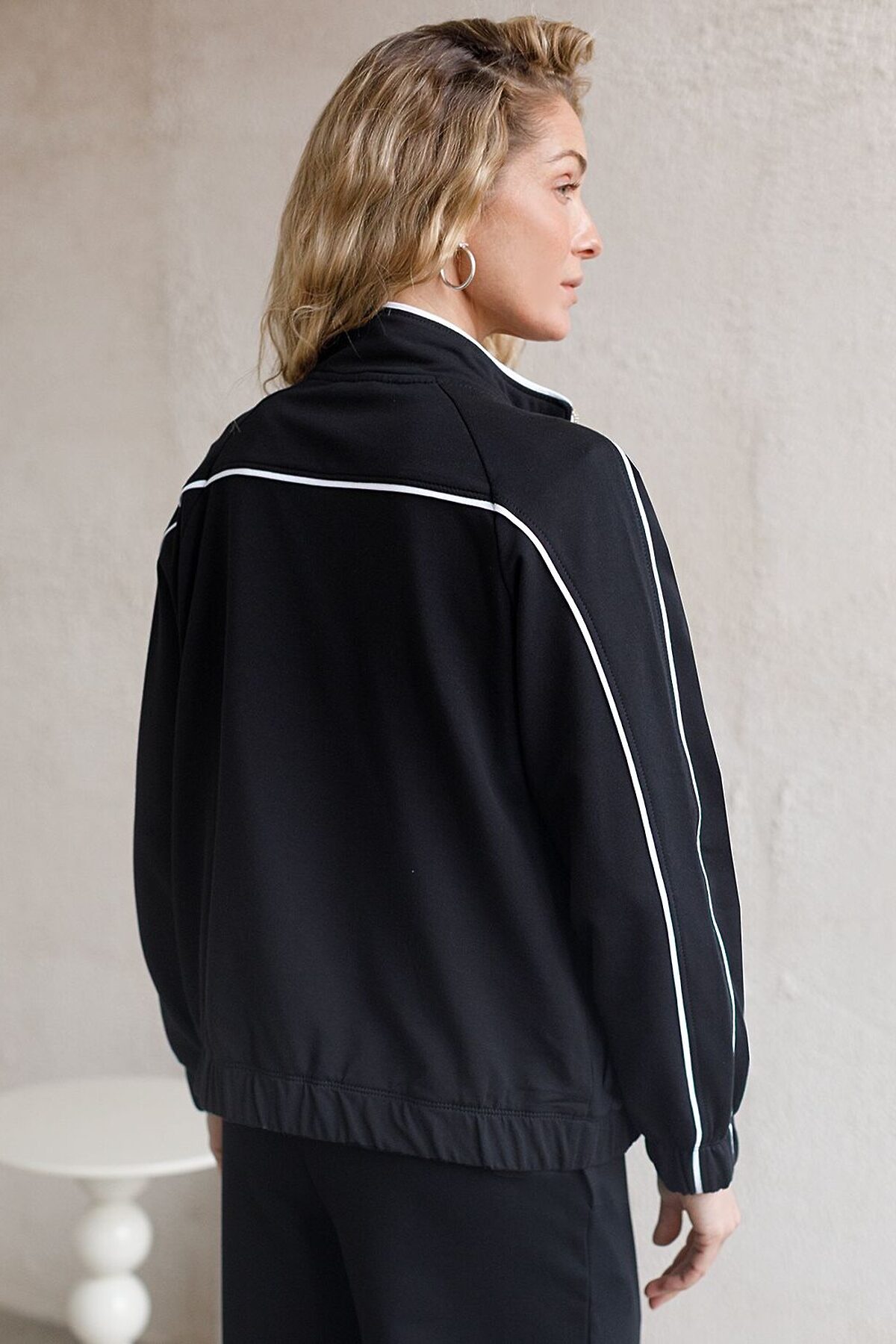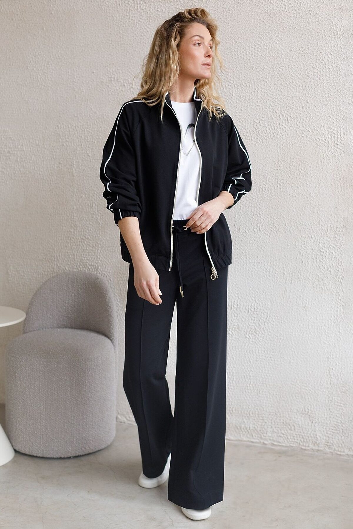 Свободный бомбер с лампасами на молнии из петельчатого футера двухнитки с эластаном VILATTE, черный