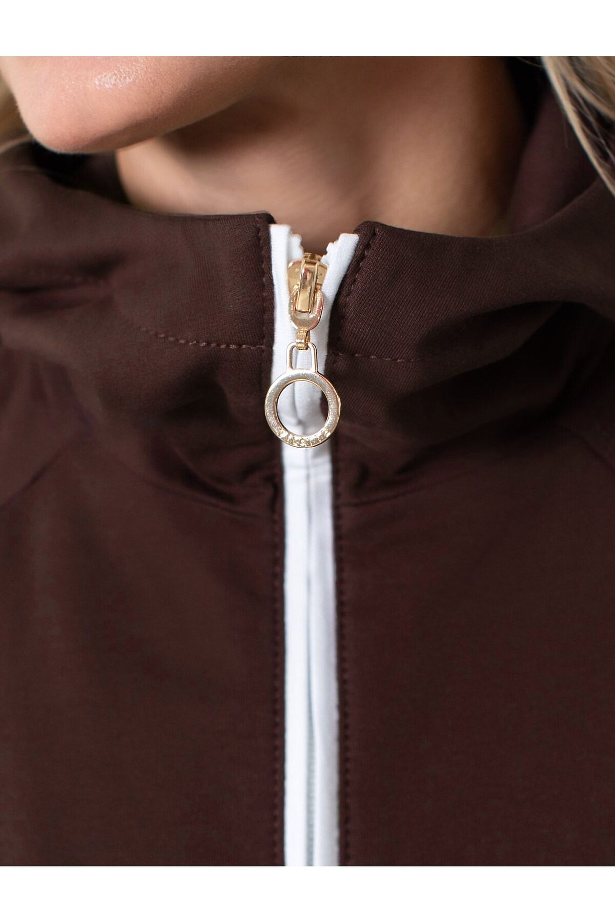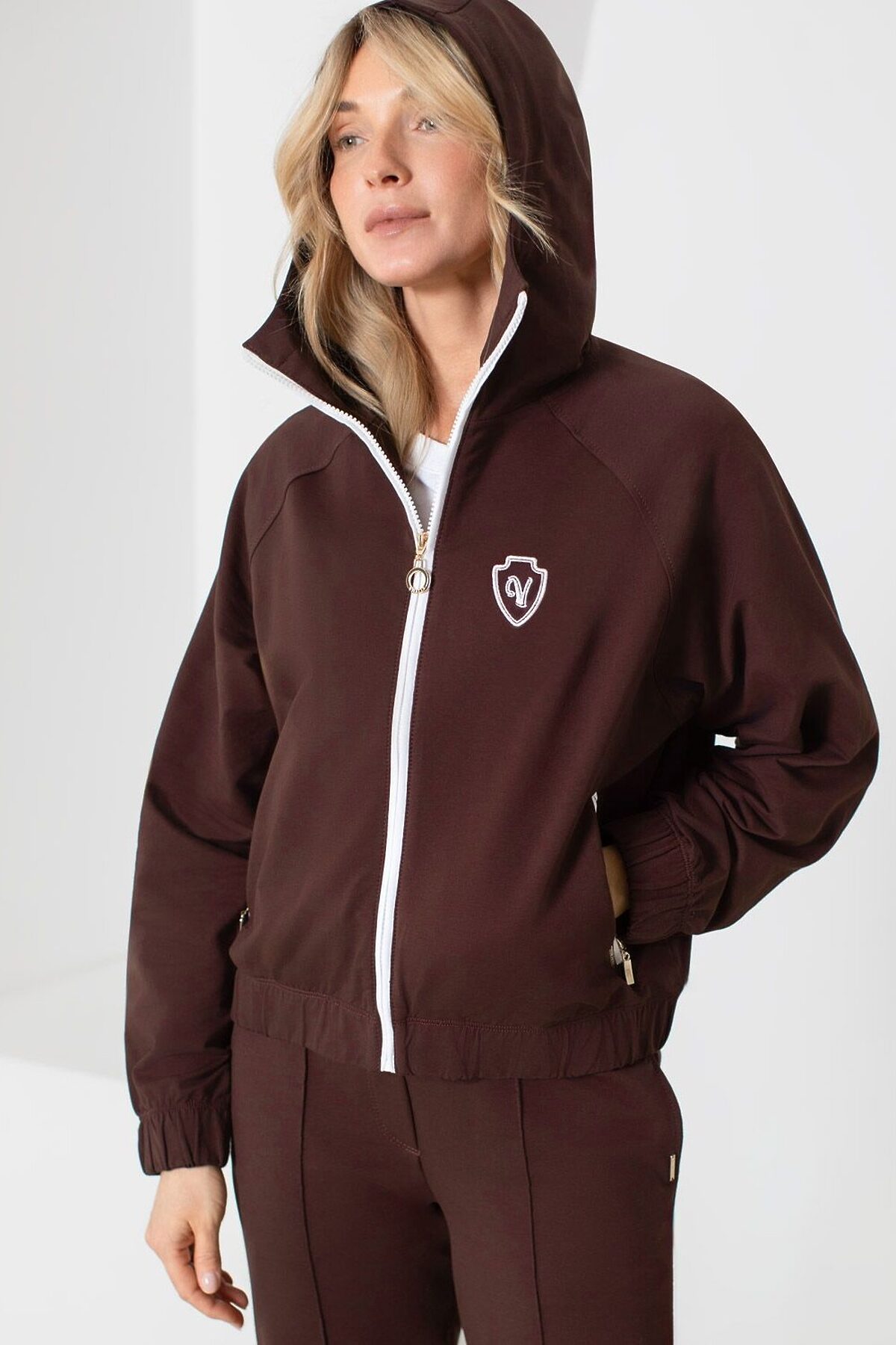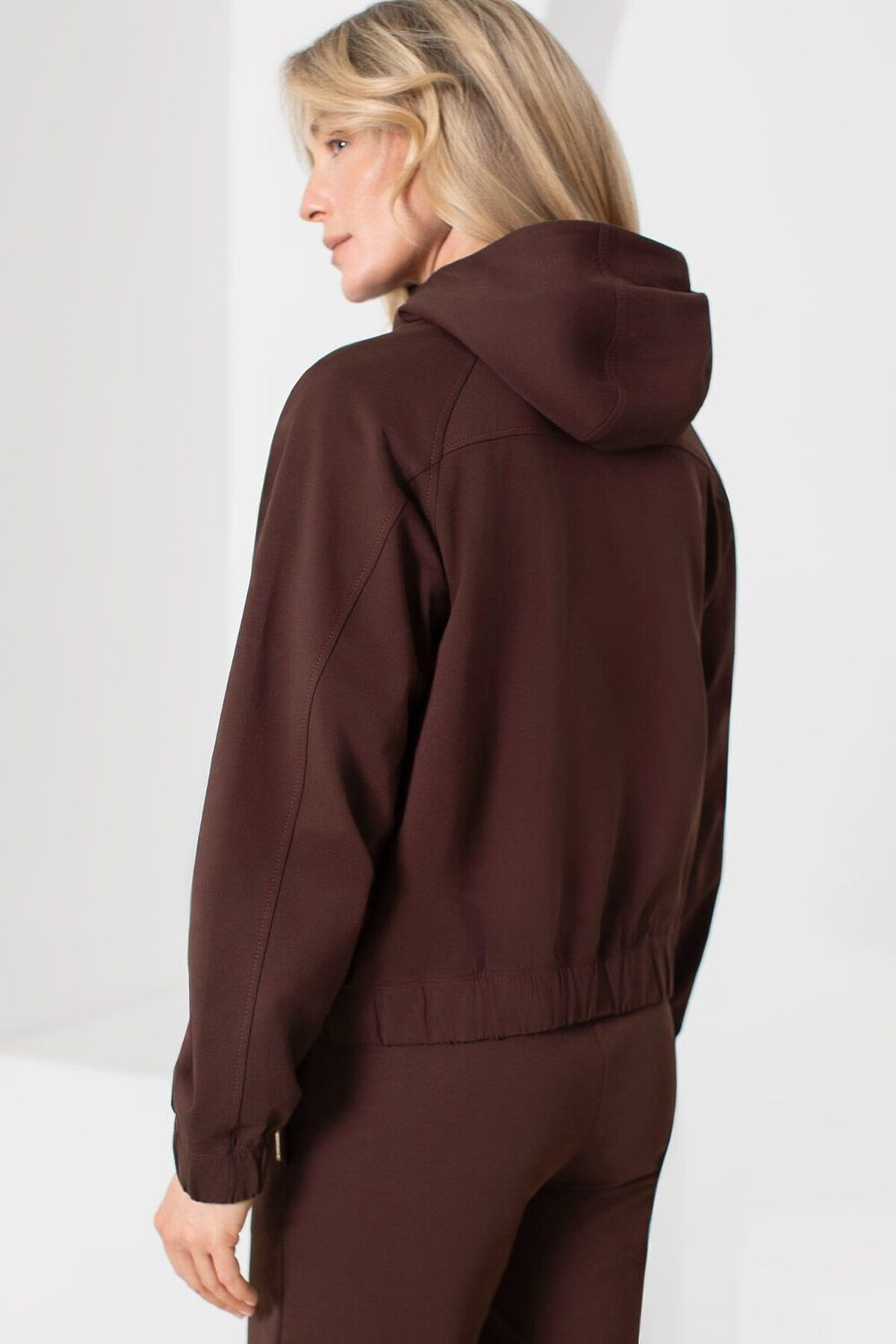 Худи на молнии из петельчатого футера двухнитки с эластаном без начеса VILATTE, коричневый