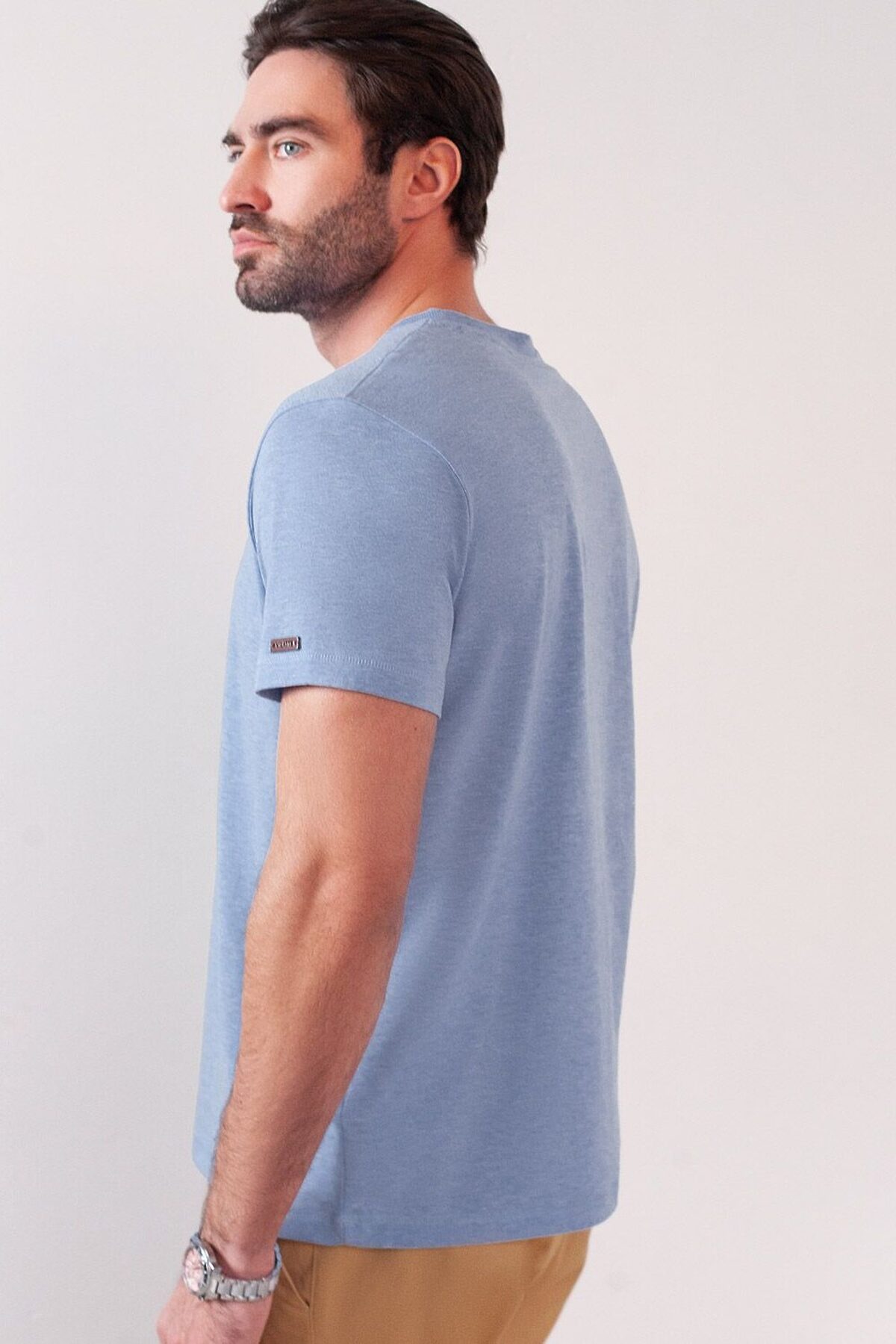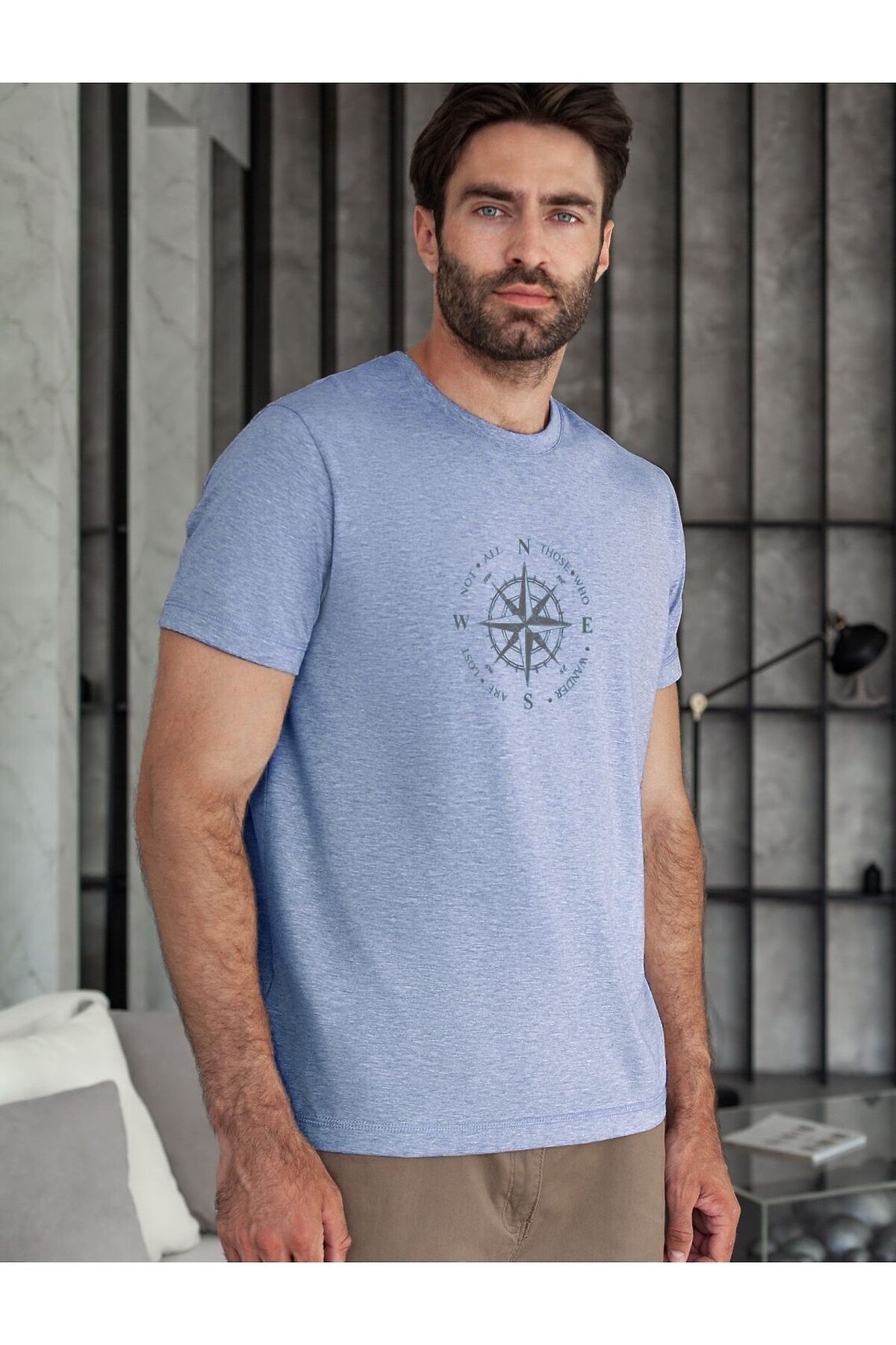 Футболка голубого цвета с эффектом меланж из премиального хлопка с эластаном плотностью 170 Г/м2 станет универсальным решением для любого случая. Эффект неоднородного цвета ткани (меланж) достигается путем смешивания волокон разных оттенков. Прямой крой обеспечивает комфортную посадку на любую фигуру, включая большие размеры, подходит как на низкий, так и на высокий рост. Благодаря сочетанию натурального хлопка и эластана, ткань отлично дышит и слегка тянется, сохраняя форму после стирок. Футболка выполнена в минималистичном стиле, дополнена принтом в виде изображения компаса и надписи. Перевод надписи: Not all those who wander are lost - Не все те, кто странствует, потеряны. На рукаве нашивка из эко-кожи с логотипом VILATTE. Подходит как классический вариант для работы в офис, так и для повседневной носки или занятий спортом. Мягкая ткань приятна к телу, не вызывает дискомфорта и идеально подходит для дома или летних прогулок. Простая и практичная футболка с коротким рукавом станет базовым элементом вашего гардероба. Она легко сочетается в спортивном или классическом стиле.