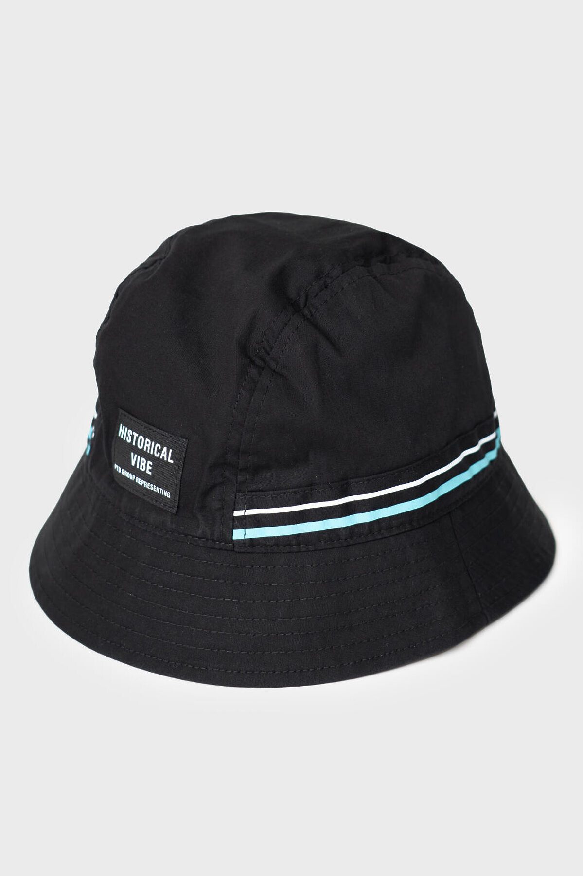 Панама для девочки подростка. Модель из чёрной хлопковой ткани, с классическим фасоном и полями средней ширины. Спереди размещена нашивка.