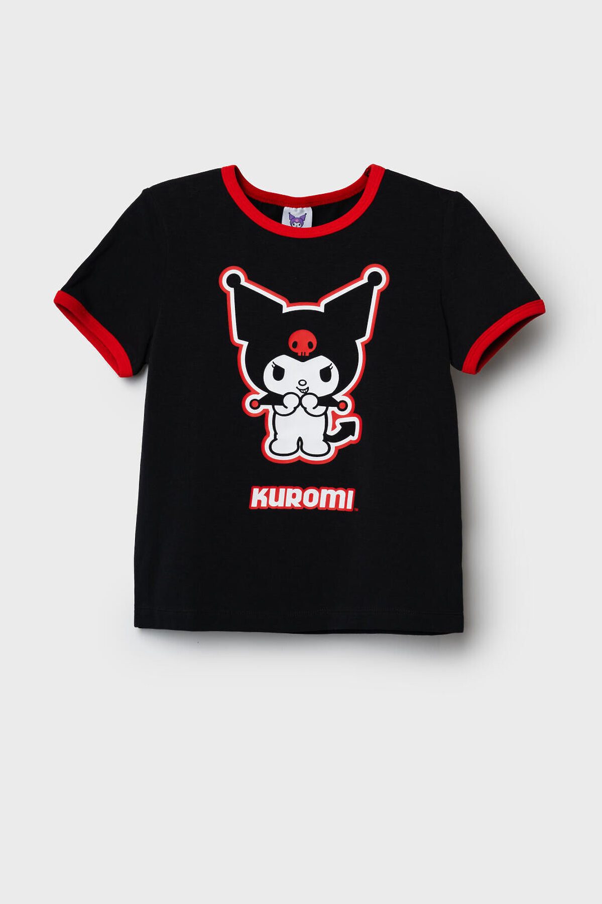 Футболка для девочки подростка. Модель прямого кроя, выполнена из эластичного хлопкового трикотажа джерси. На груди расположен крупный принт с любимым персонажем Куроми.