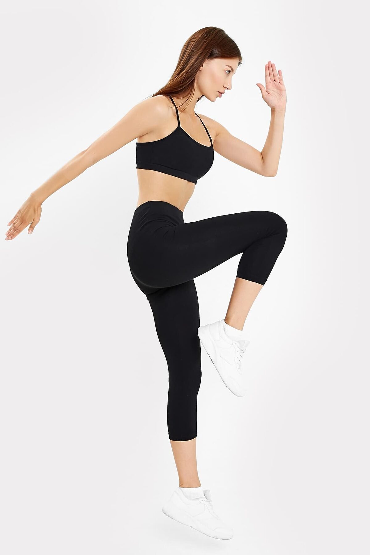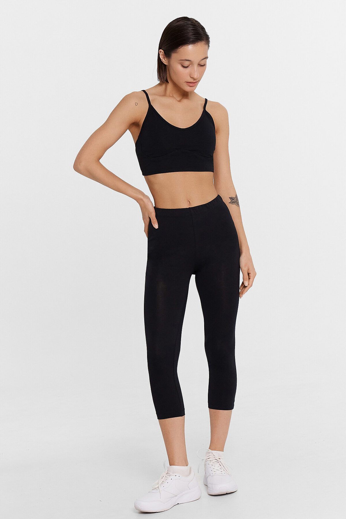Спортивные бриджи прилегающего силуэта длиной ниже колена. Посадка чуть выше средней. Прочные невыпуклые швы совершенно не ощущаются кожей. В составе полотна – натуральный хлопок и немного эластана. Отличный вариант для спорта, отдыха и домашних дел!