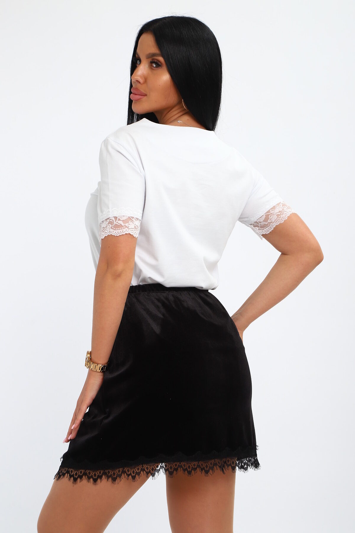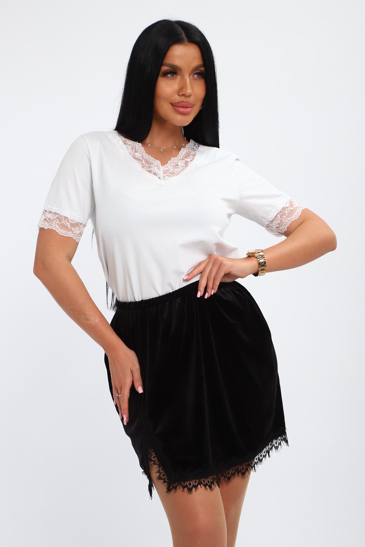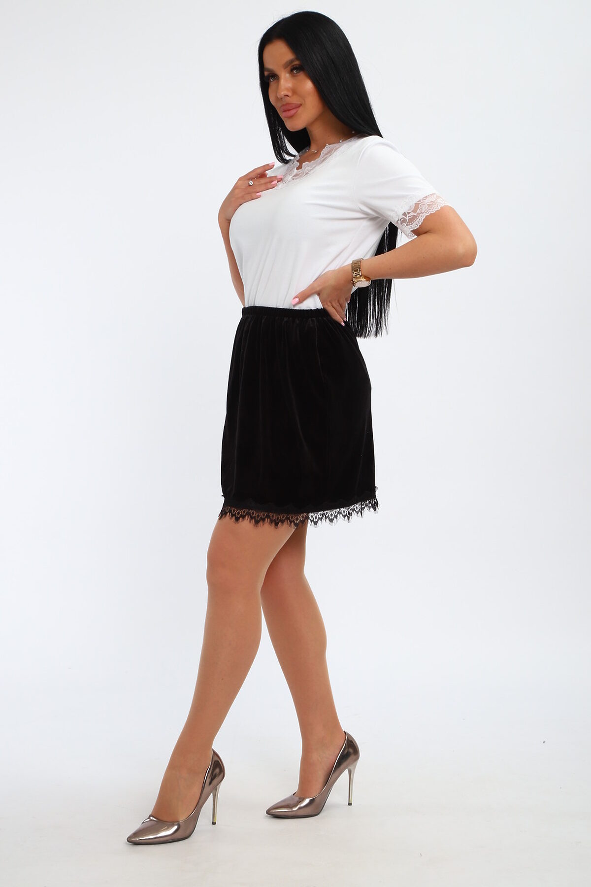 Стильная, бархатная юбка с кружевом идеальный выбор для создания элегантного и соблазнительного образа. Мягкий блеск ткани подчёркивает женственность ,а отделка в виде кружева, делает модель особенно утончённой. Эта бархатная мини юбка дополнит любой образ и подчеркнёт природную женственность! Обратите внимание: в зависимости от партии поставки кружево может иметь незначительные отличия от образца на фото.