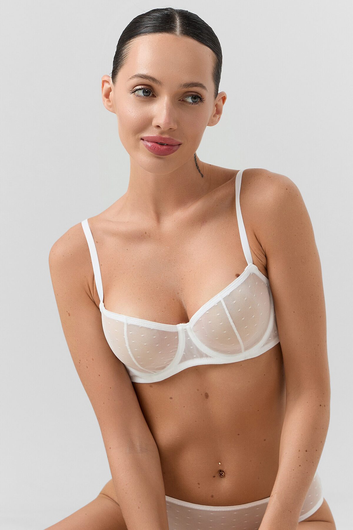 Изящный бюстгальтер женский балконет с мягкими чашками и двойным членением представляет собой изысканное нижнее белье, созданное для поддержки и придания красивой формы груди. Изготовленный из кружевного полотна, он восхищает своей элегантностью и красотой. Модель с чашками на косточках, что обеспечивает комфортную посадку и естественное приподнимание груди, создавая желаемую форму и объем. Наличие двойного членения на чашках дополнительно подчеркивает изгибы и контуры. Оснащенный кольцами-регуляторами на бретелях, данный бюстгальтер позволяет самостоятельно настроить длину и обеспечить оптимальную поддержку. Балконет имеет двойную застежку на спинке, что обеспечивает надежную фиксацию и удобство при его носке. Он прекрасно подходит для создания женственного и соблазнительного образа, подчеркивая прелести и индивидуальность каждой женщины. В дополнение к нему вы найдете трусики из этой же капсулы и соберете стильный бельевой set. Рекомендуем!