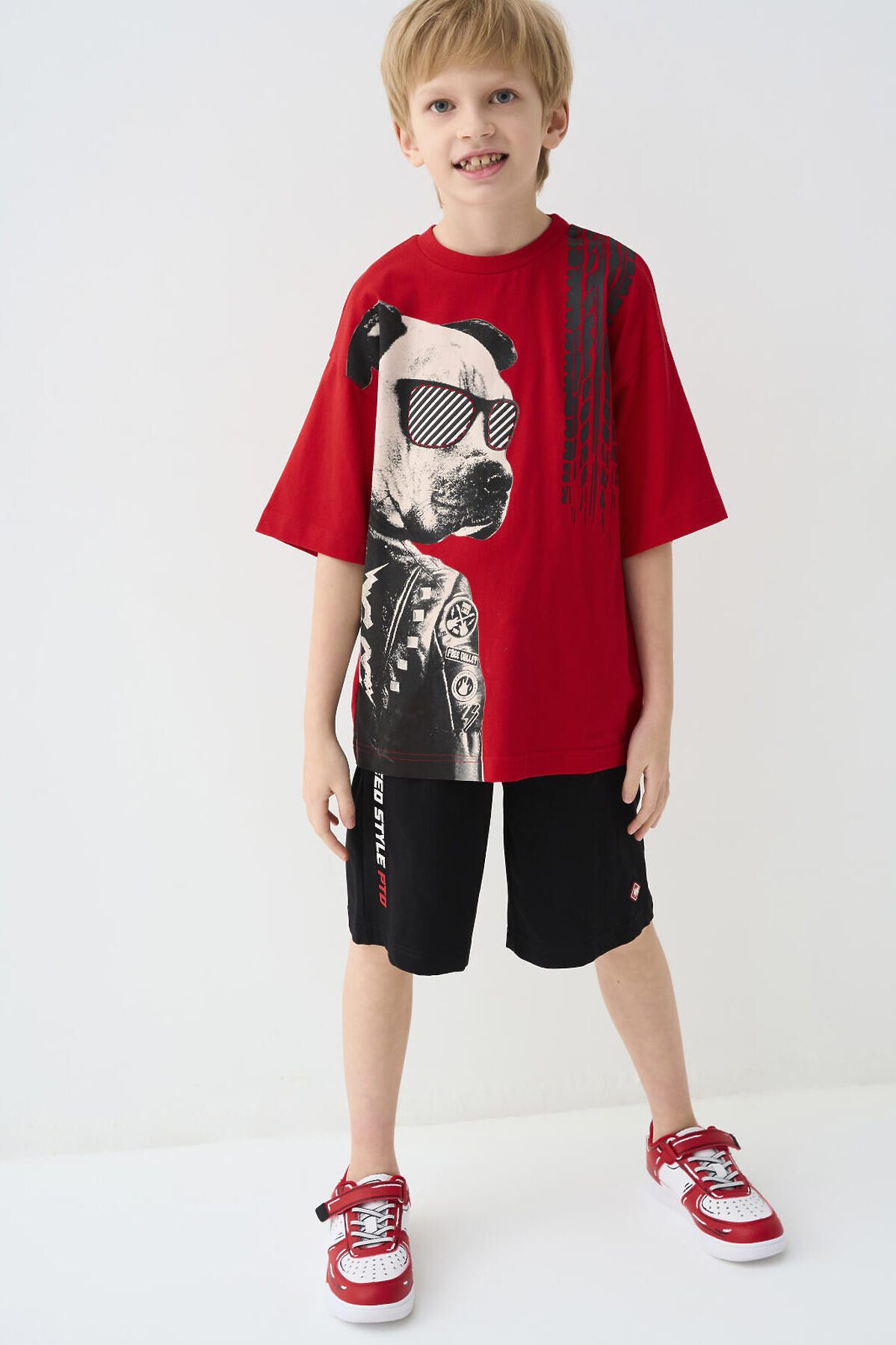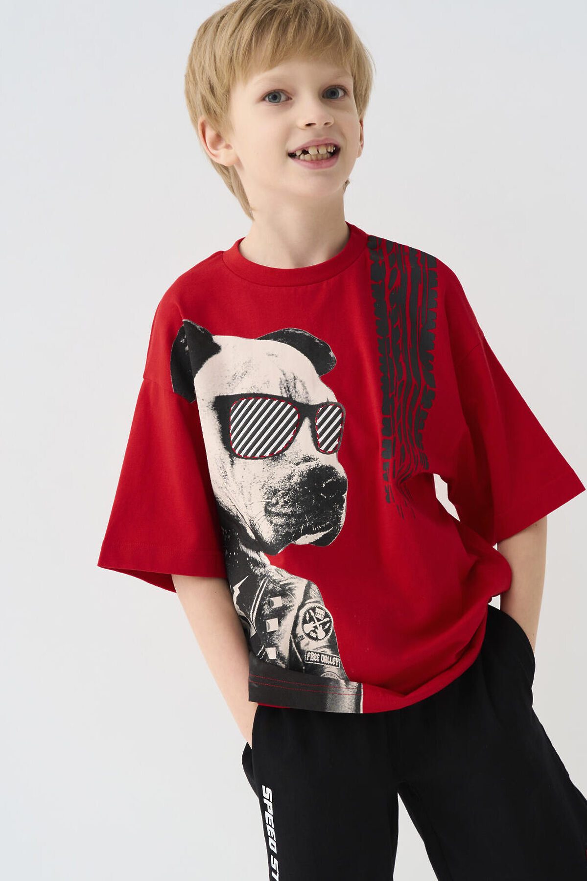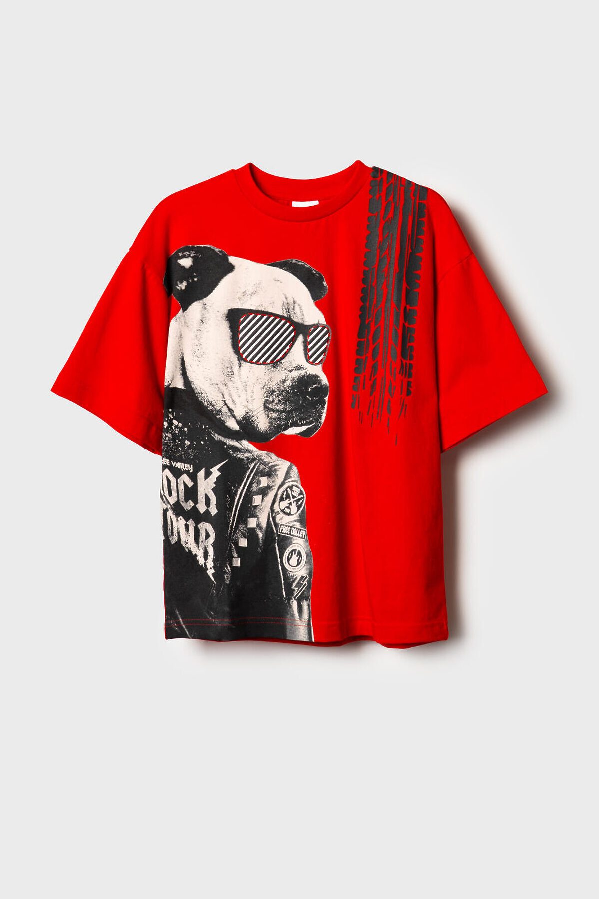 Футболка оверсайз с коротким рукавом для мальчика подростка. Трикотаж с высоким содержанием хлопка. Перед изделия декорирован крупным контрастным принтом с графикой в байкерской тематике. Спинка дополнена декоративными элементами.