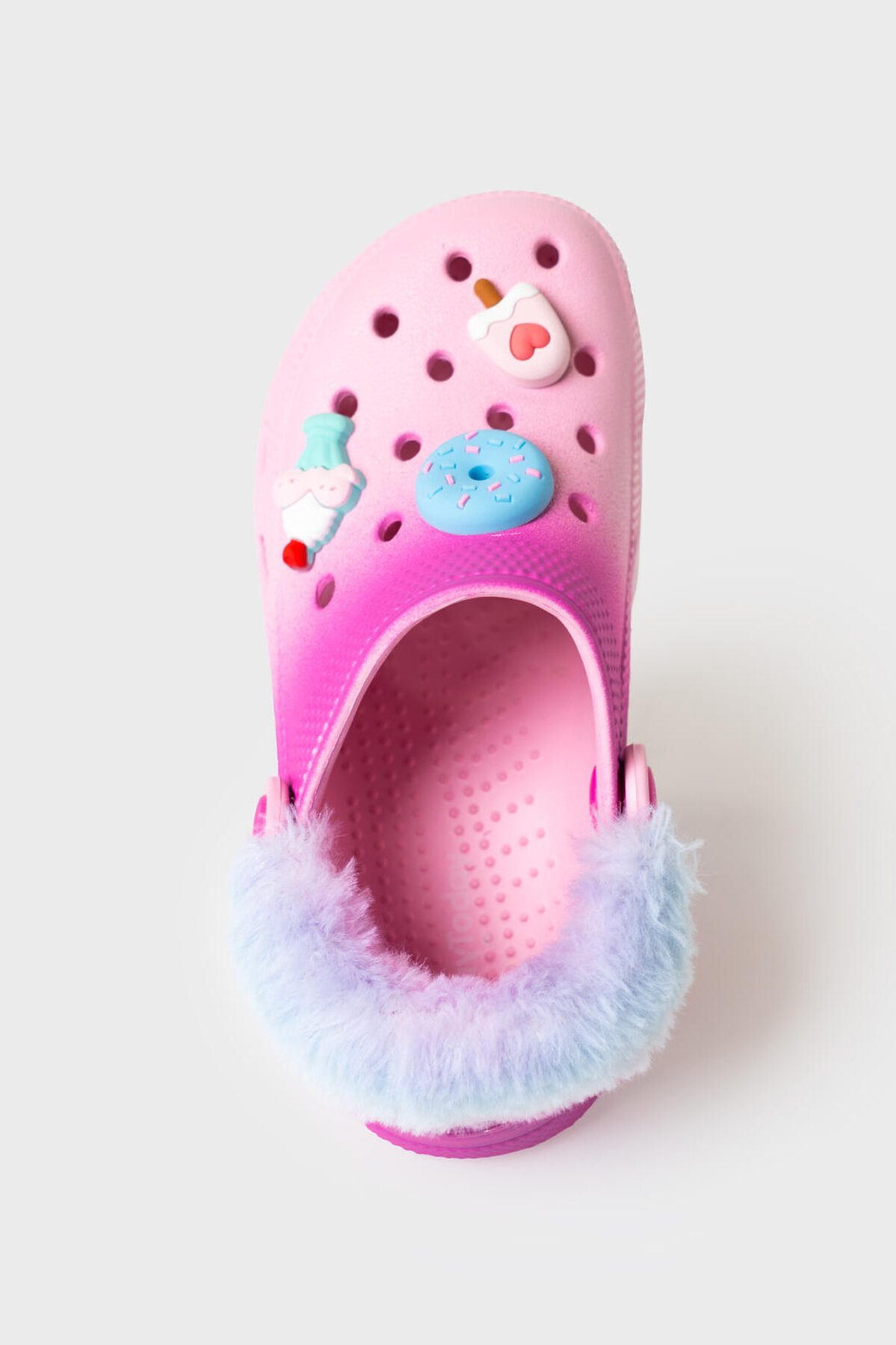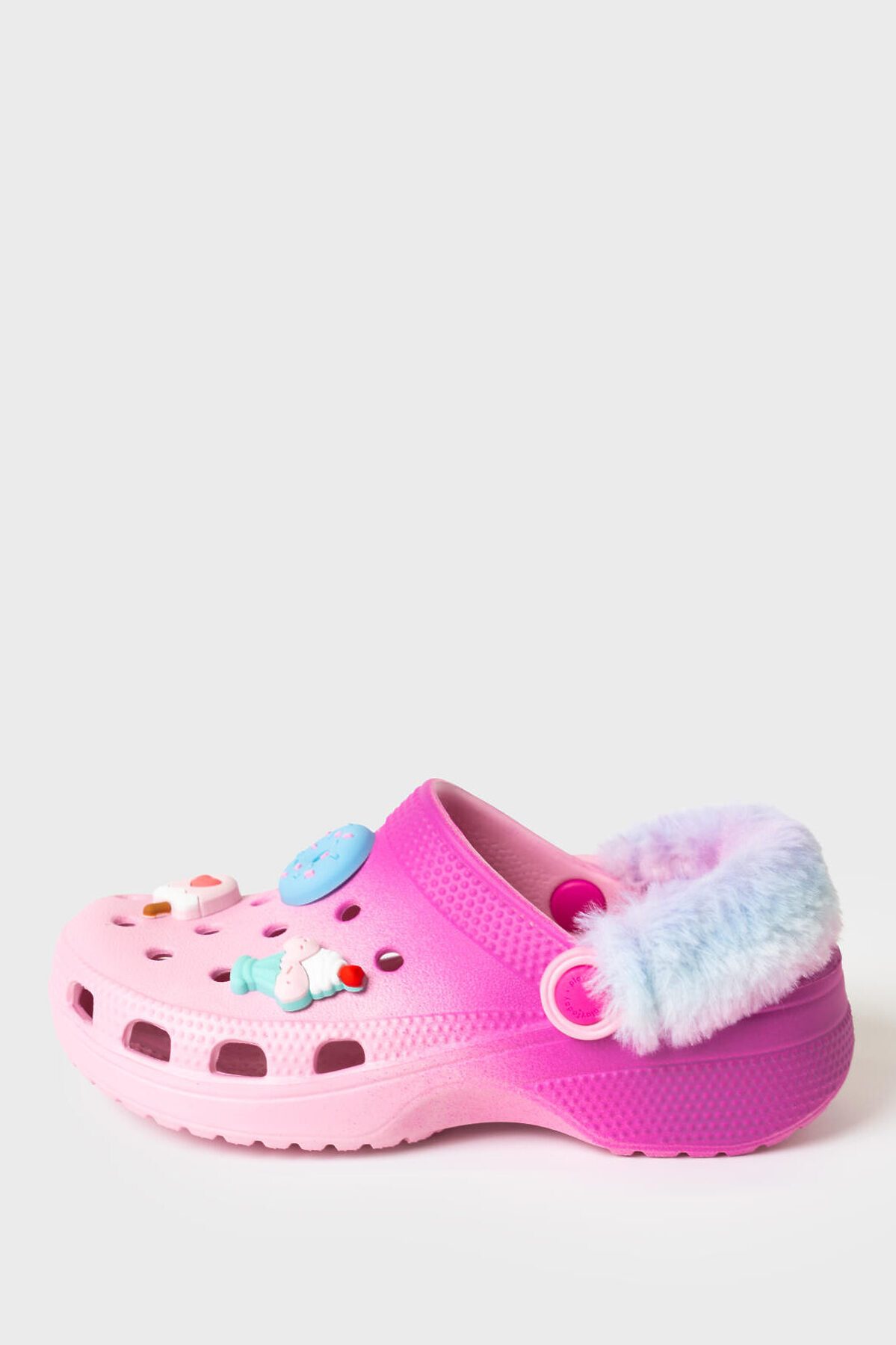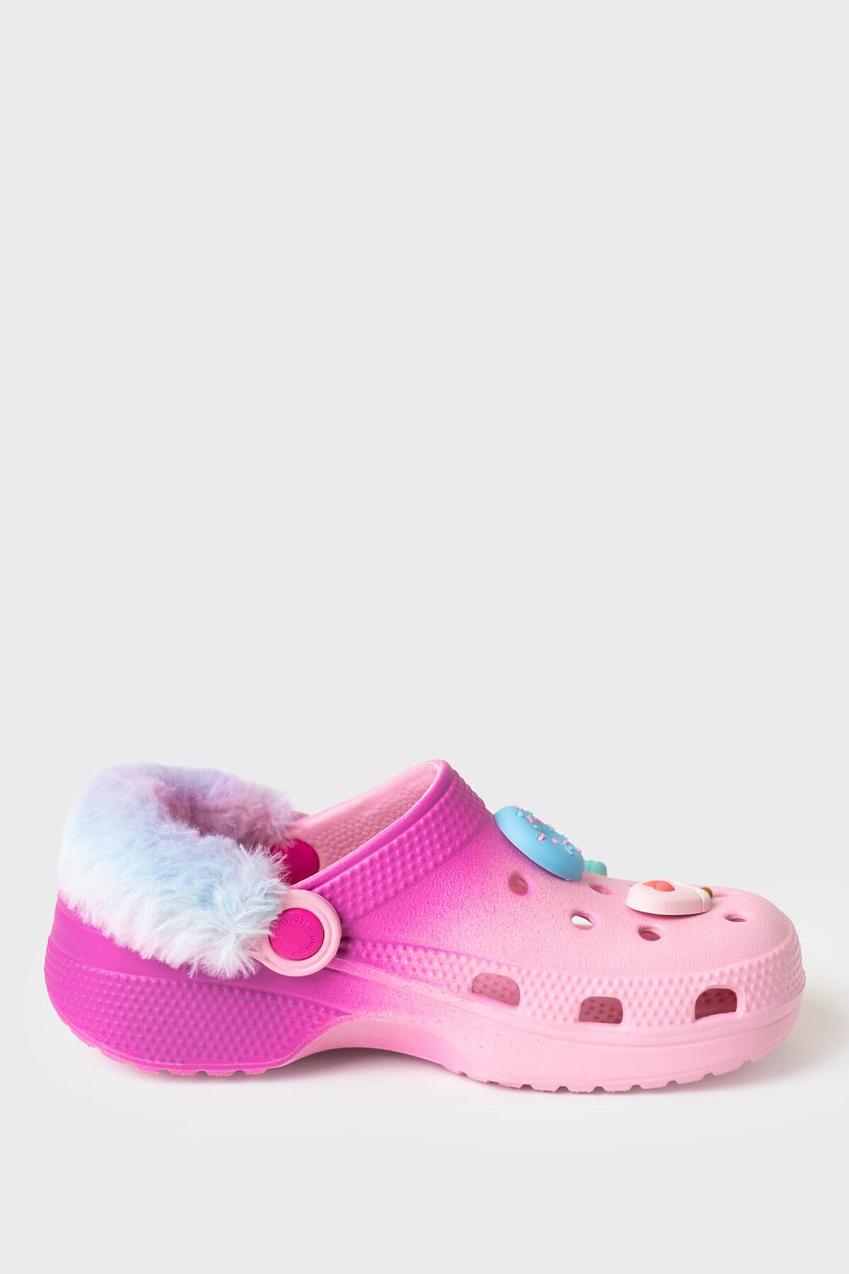 Оригинальное сабо для девочки. Сабо из облегченного и прочного ЭВА. Модель декорирована объемными джибицами в стиле сandy.. Материал хорошо моется. Форма модели учитывает эргономику стопы. Модель имеет перекидной ремешок для лучшей фиксации обуви на ноге. Ремешок имеет модную меховую отделку, которую при желании можно снять, так как ремешок отстегивается *Размер на подошве может отличаться от этикетки. Сверяйтесь с информацией на этикетке.