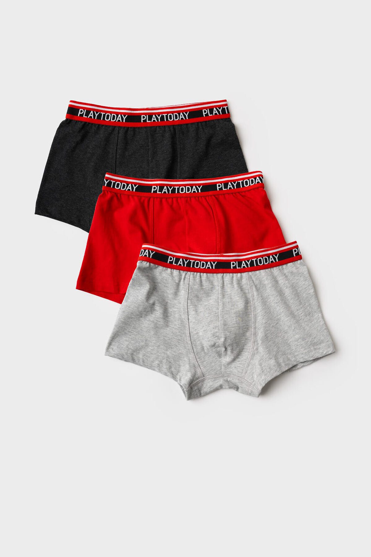 Трусы трикотажные для мальчиков - боксеры, 3 шт в комплекте PLAYTODAY, красный,черный,серый меланж