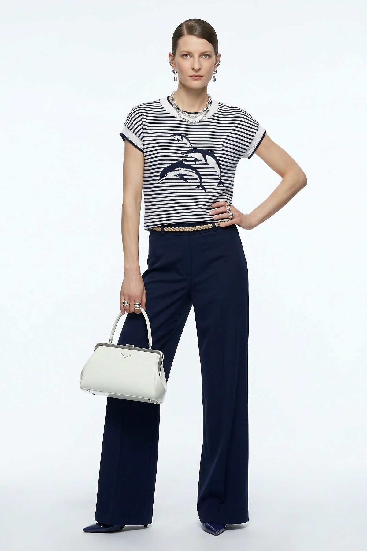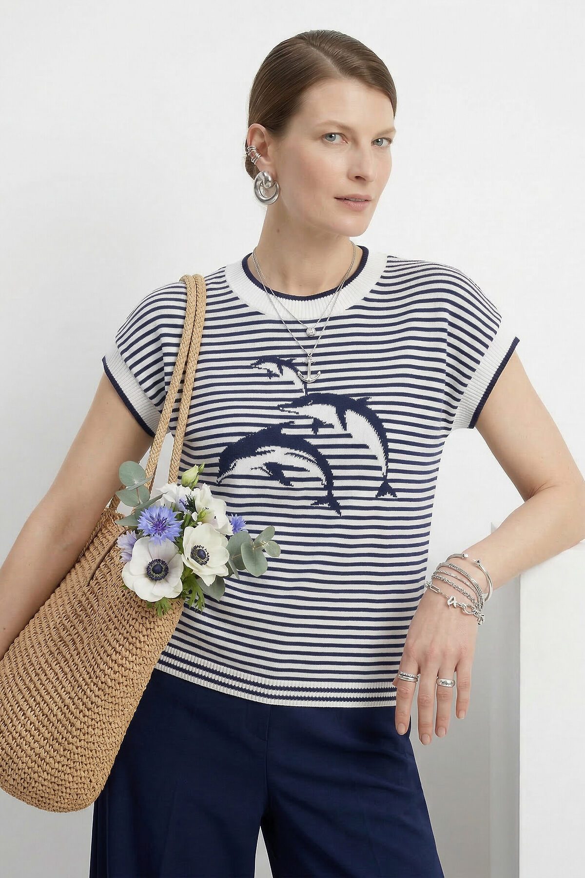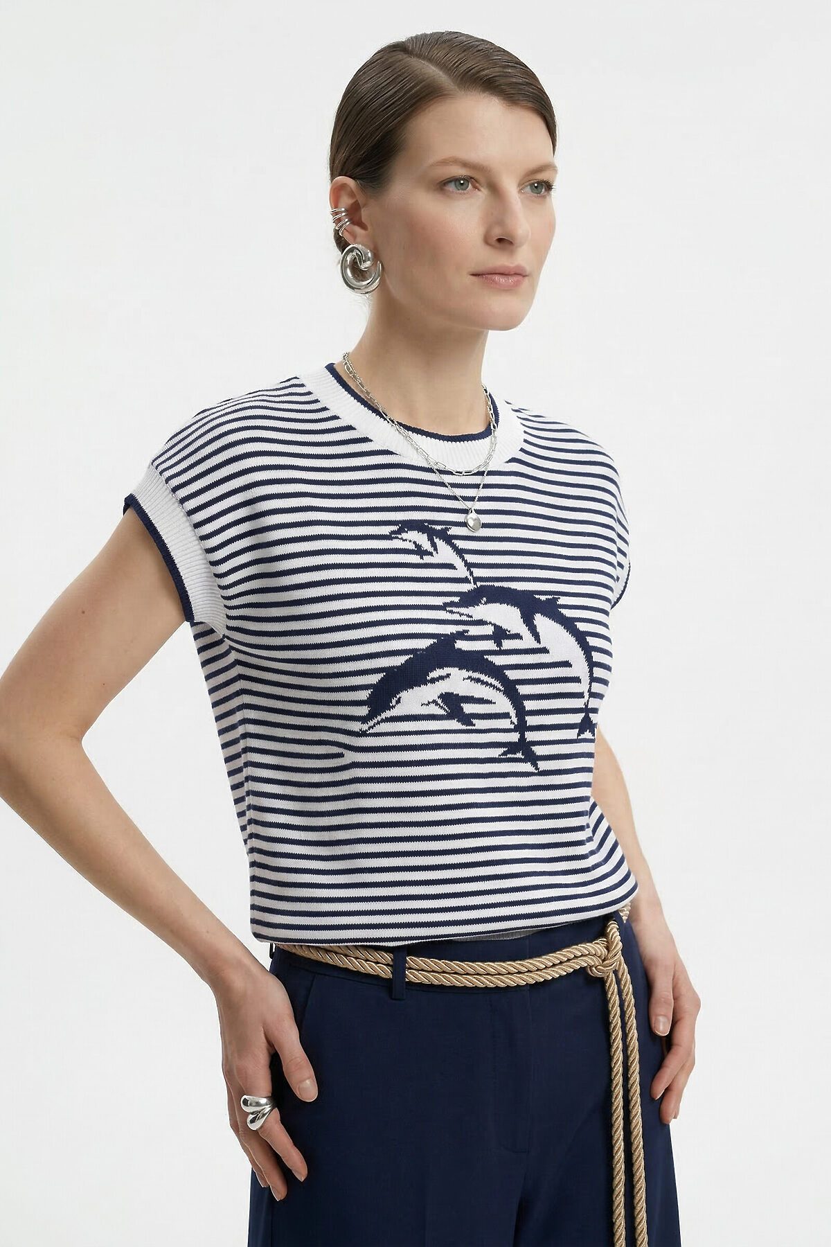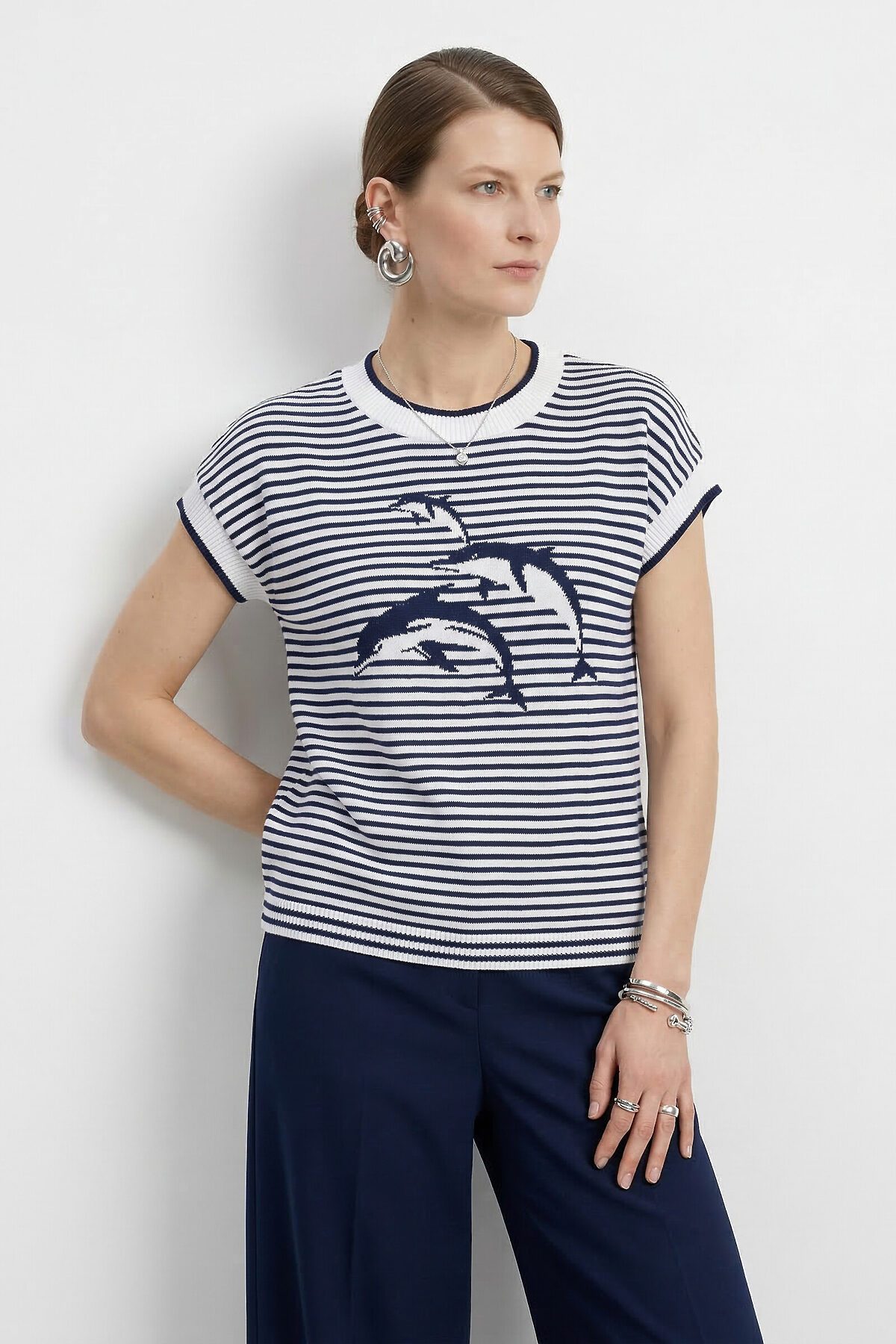 Джемпер NEWVAY, белый/т.синий