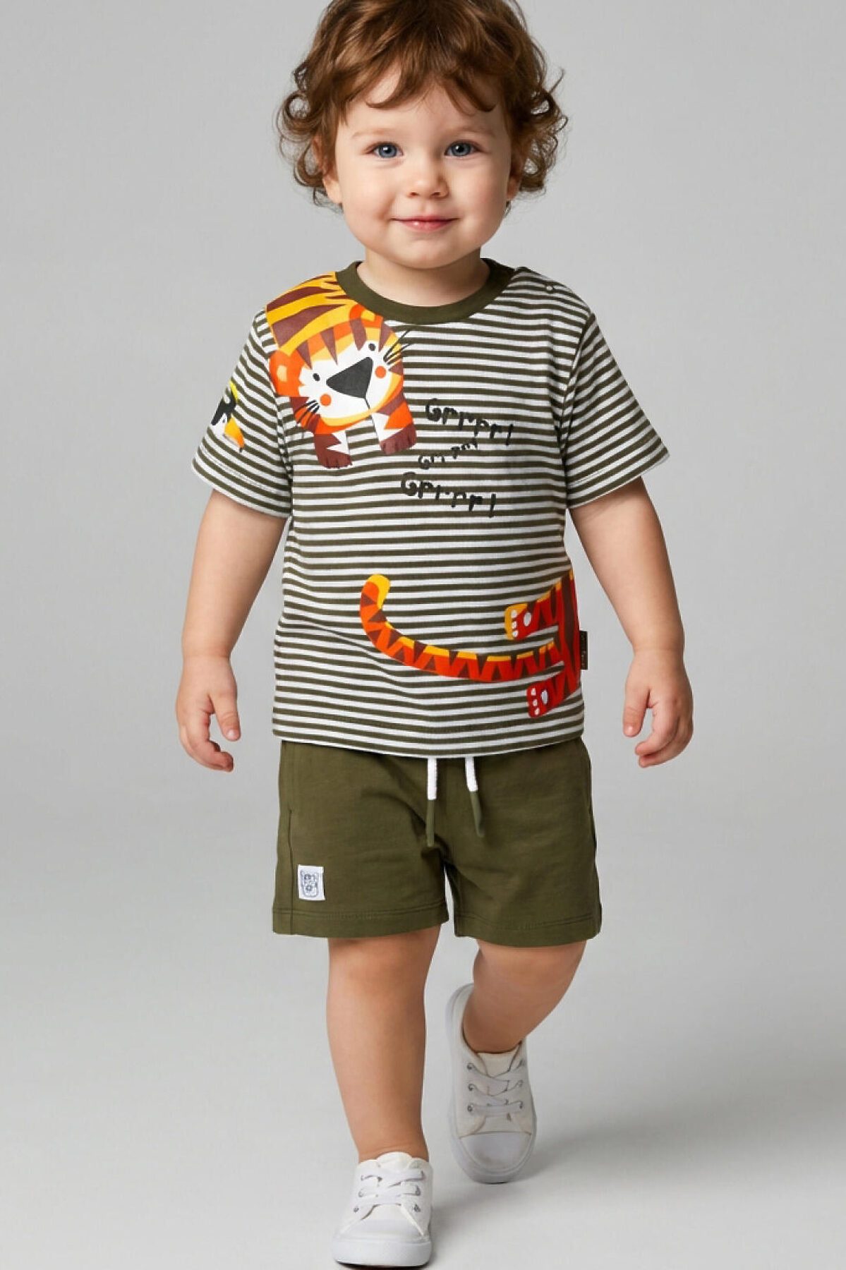 Комплект детский трикотажный для мальчиков: джемпер (футболка), шорты PLAYTODAY, белый,темно-зеленый,светло-зеленый