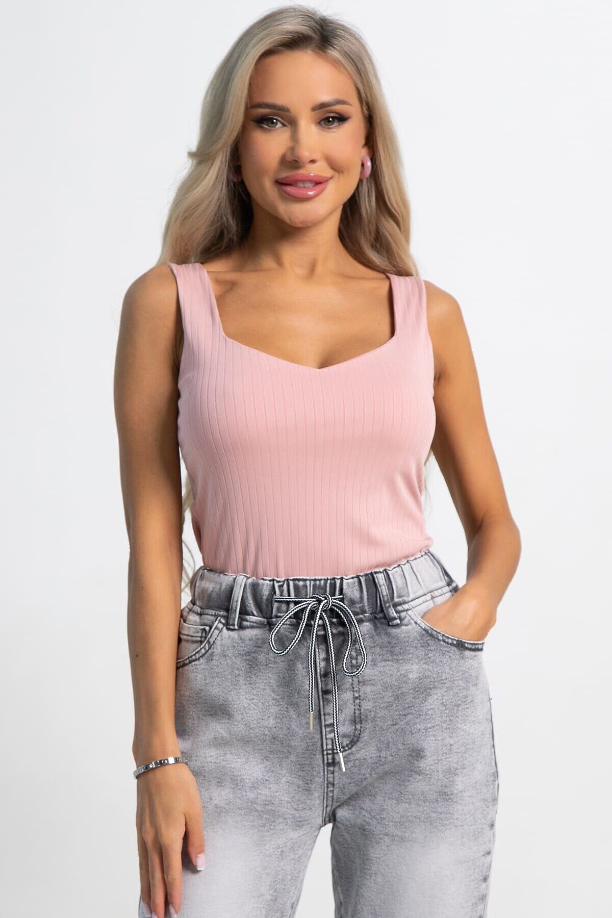 Женский трикотажный топ в пудровом оттенке — это универсальная базовая вещь, которая подойдет для любого сезона. Он легко впишется в любой гардероб, став основой стильных и удобных образов для работы, прогулок или вечеринок. Топ с фигурным вырезом деликатно подчеркивает линию декольте и удлиняет шею, придавая образу женственность и изящество. Его можно носить под пиджак, жакет, кардиган, жилет или свитер, не добавляя лишнего объема. Топ отлично сочетается с джинсами, брюками, юбками и костюмами, создавая гармоничные и стильные образы.