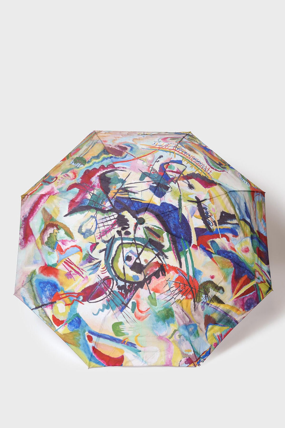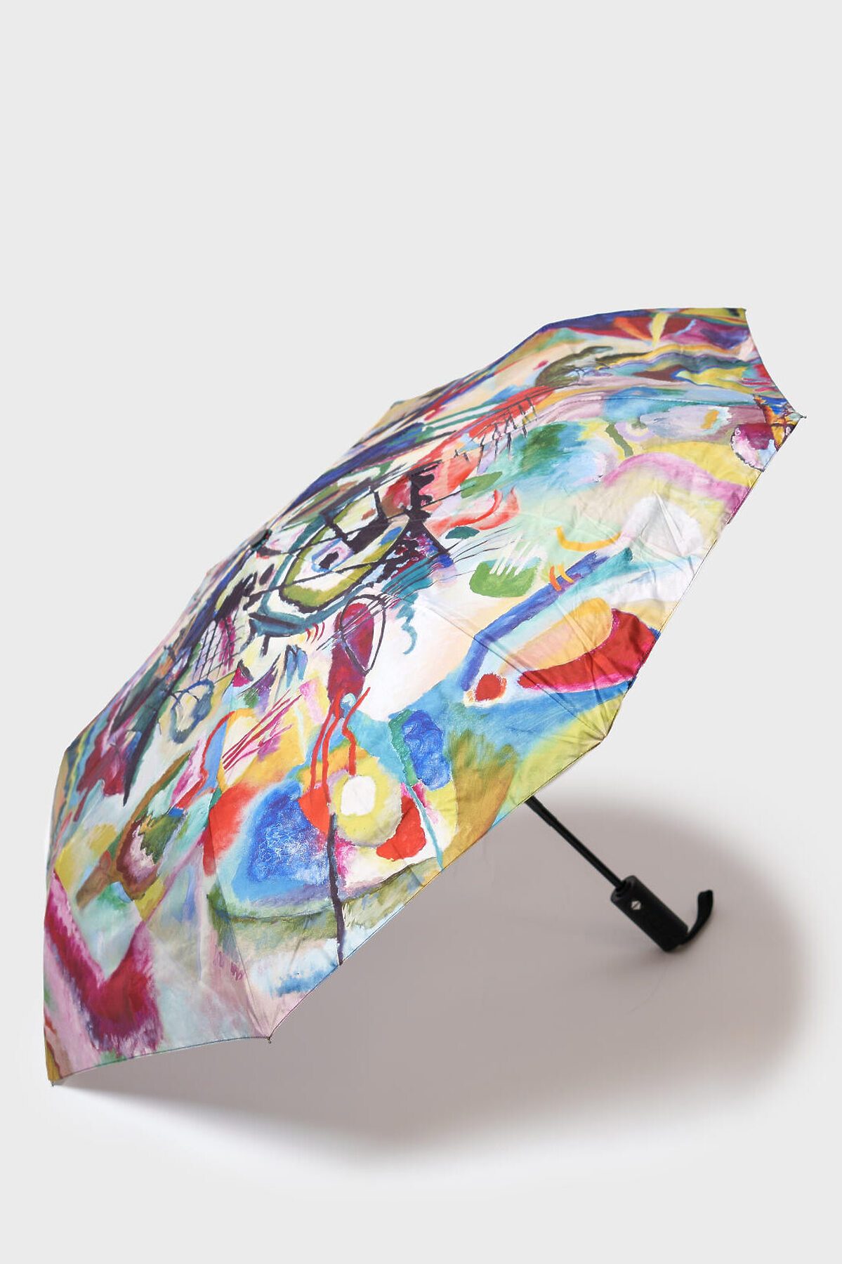 Зонт-автомат для девочки-подростка из коллаборации с Третьяковской галереей. Принт - фрагмент картины Василия Кандинского, Композиция VII, 1913. Брендированная ручка и фирменные элементы. Длина 28 см, диаметр купола 97 см. Механизм складывания - автомат.