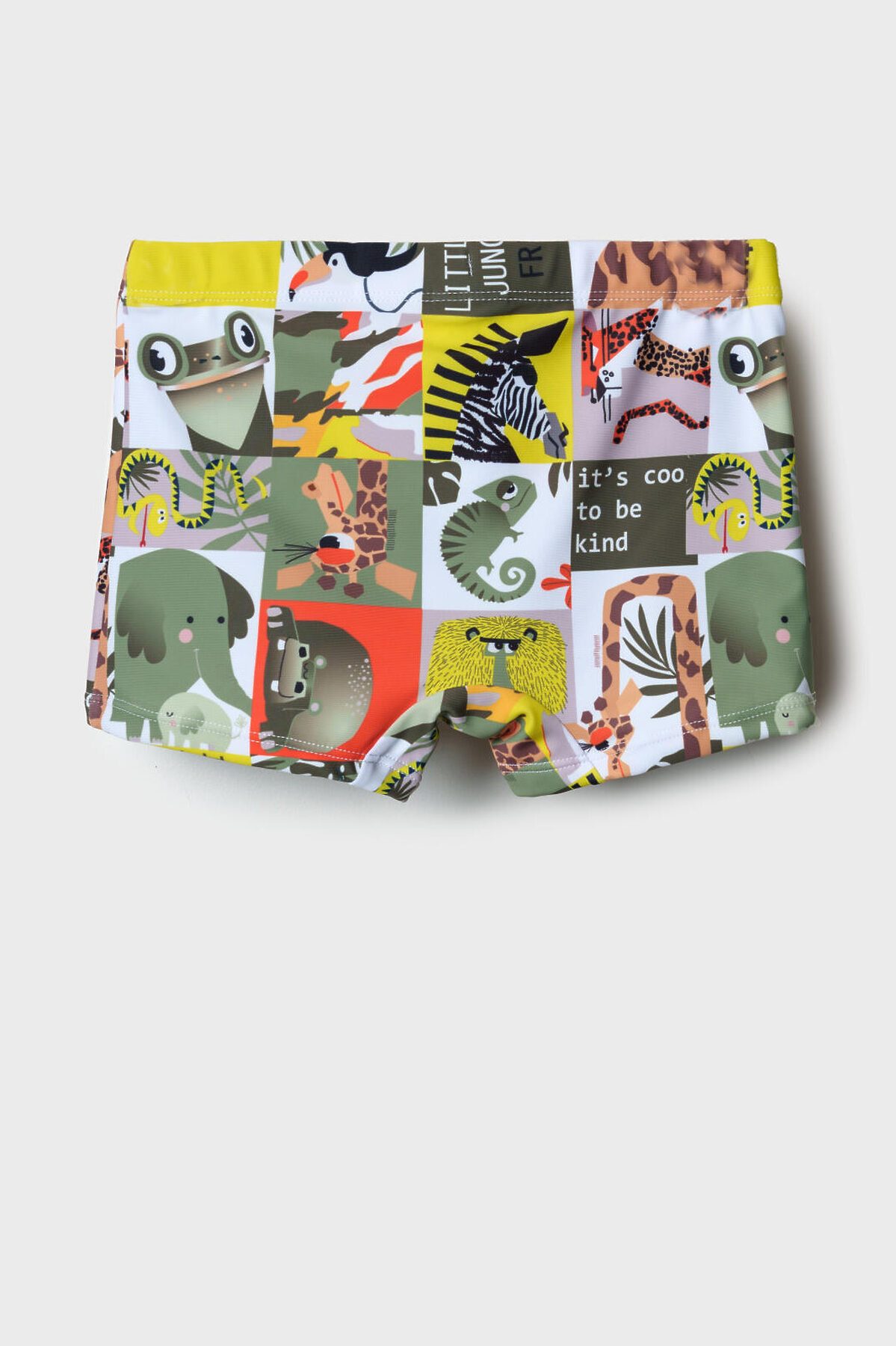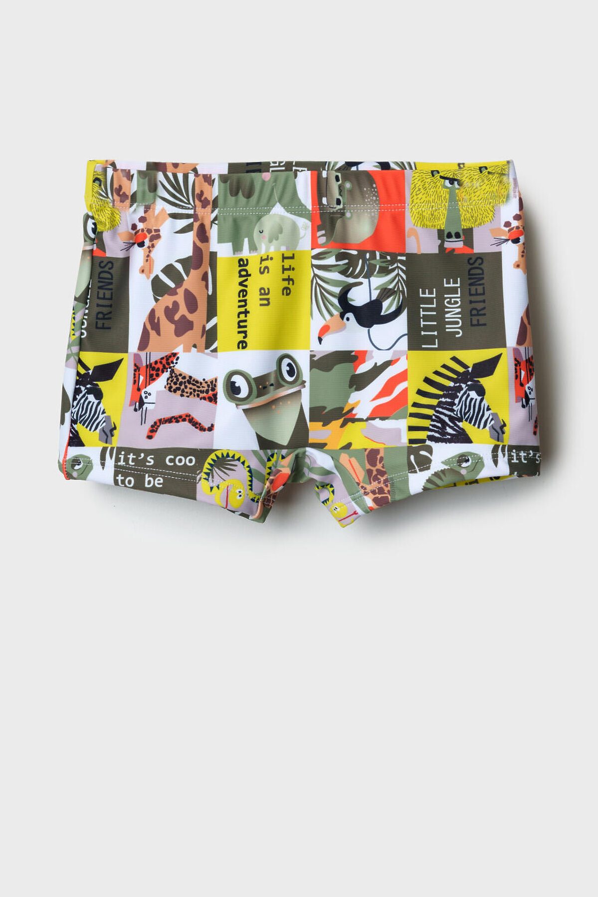 Плавки-шорты детские средней длины, прилегающего силуэта для мальчика. Изготовлены из эластичного трикотажа, с подкладкой для большего комфорта. Ткань устойчива к солнцу и солёной воде, благодаря UF-защите сохраняет насыщенность цвета и структуру волокон. В поясе — удобная резинка и регулируемый шнурок.