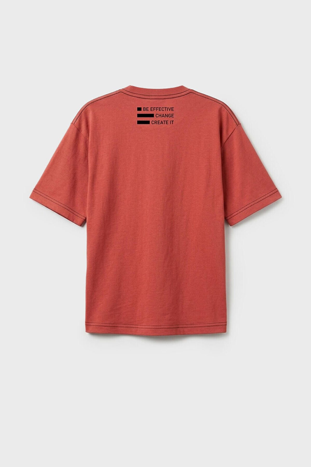 Футболка оверсайз для мальчика подростка. Модель свободного кроя с короткими рукавами, выполнена из эластичного трикотажа. В центре расположен графичный чёрный принт, на спине — мотивирующая надпись. Левый рукав украшен декоративной нашивкой с объёмным текстом. Круглая горловина отделана эластичным рибом. Идеальна для повседневного стиля с акцентом на самовыражение.