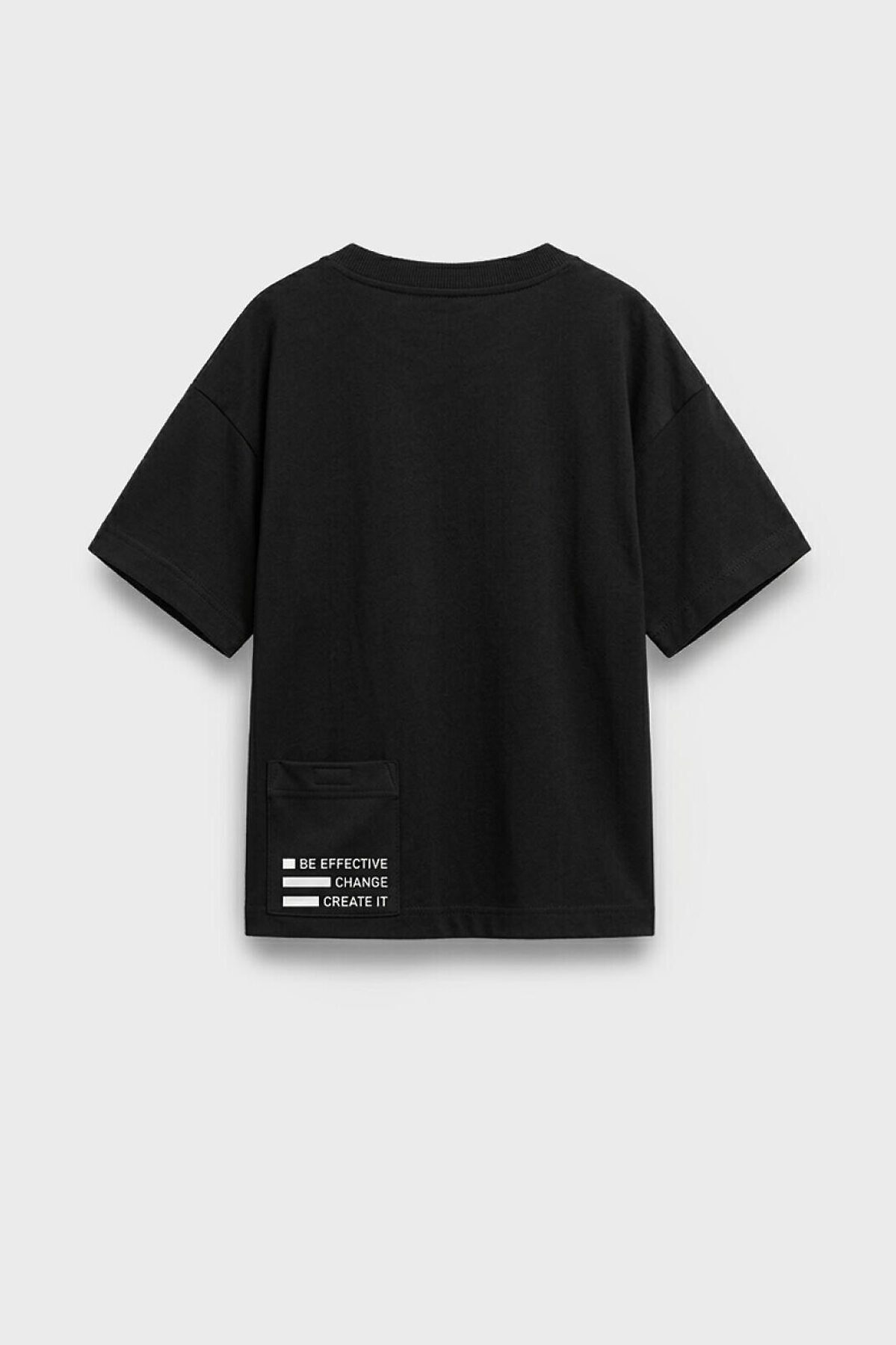 Футболка оверсайз с коротким рукавом для мальчика подростка. Футболка выполнена из приятного к телу хлопкового трикотажа с добавлением эластана. На груди размещён оригинальный принт с текстом и имитацией металлических цепочек. Сзади — накладной карман на липучке. Горловина обработана эластичным рибом. Карман дополнен светоотражающим элементом.