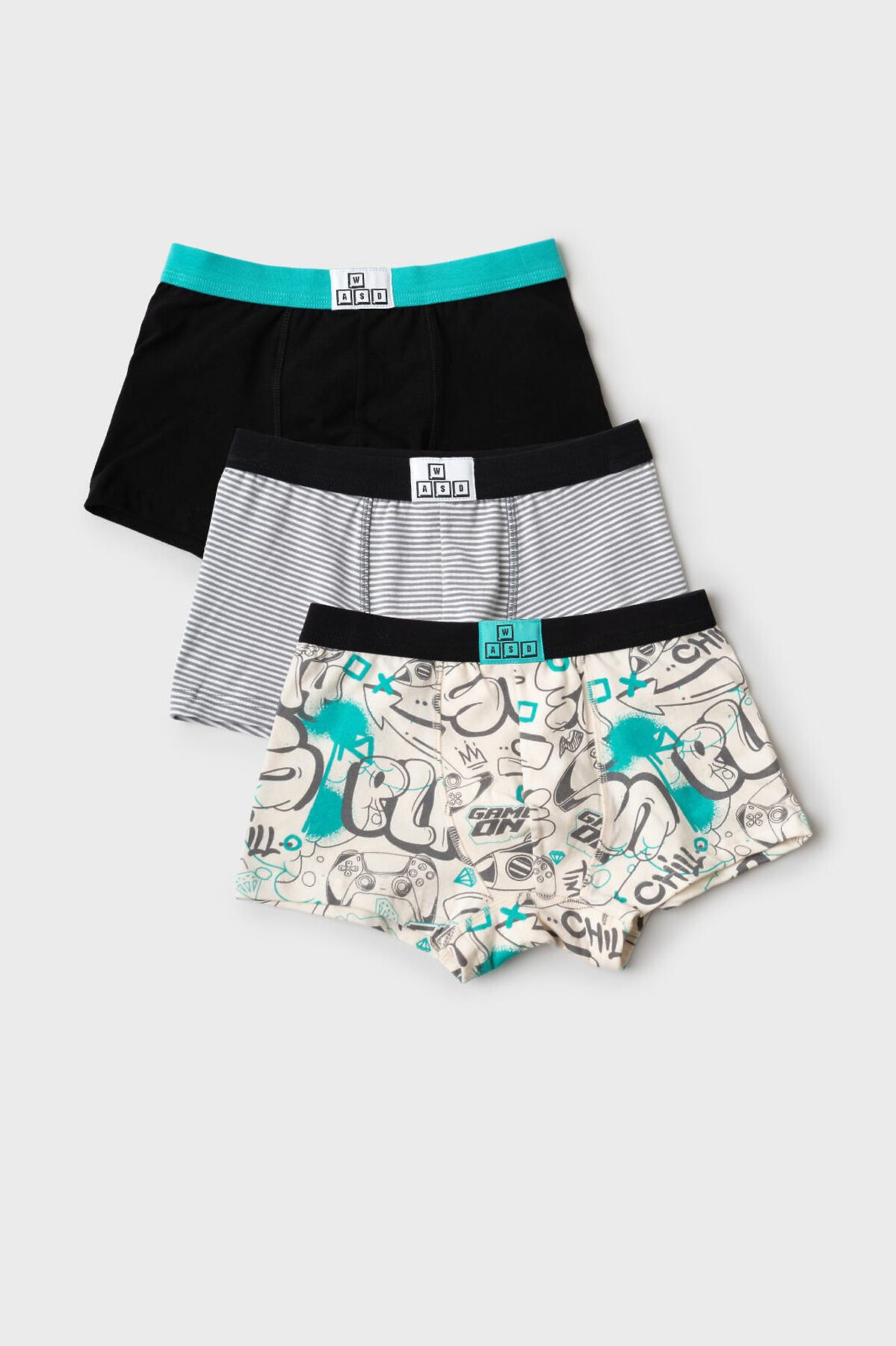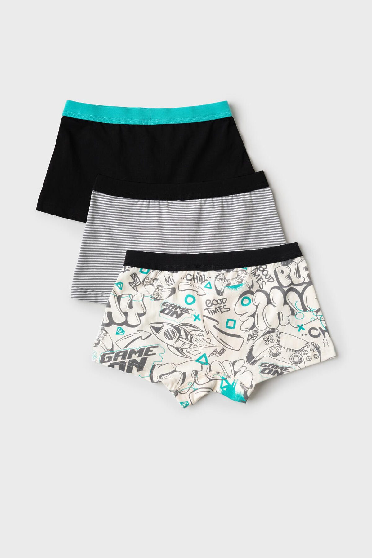 Набор из трех трусов-боксеров для мальчика подростка. Изделие плотно прилегает к телу, не имеет боковых швов, что делает его особенно комфортным. Эластичный пояс с логотипом бренда обеспечивает надёжную посадку. Материал — мягкий хлопковый трикотаж, приятный к телу.