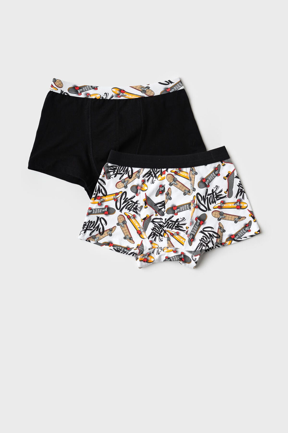 Набор из двух трусов-боксеров для мальчика подростка. Изделие плотно прилегает к телу, не имеет боковых швов, что делает его особенно комфортным. Эластичный пояс с логотипом бренда обеспечивает надёжную посадку. Материал — мягкий хлопковый трикотаж, приятный к телу.
