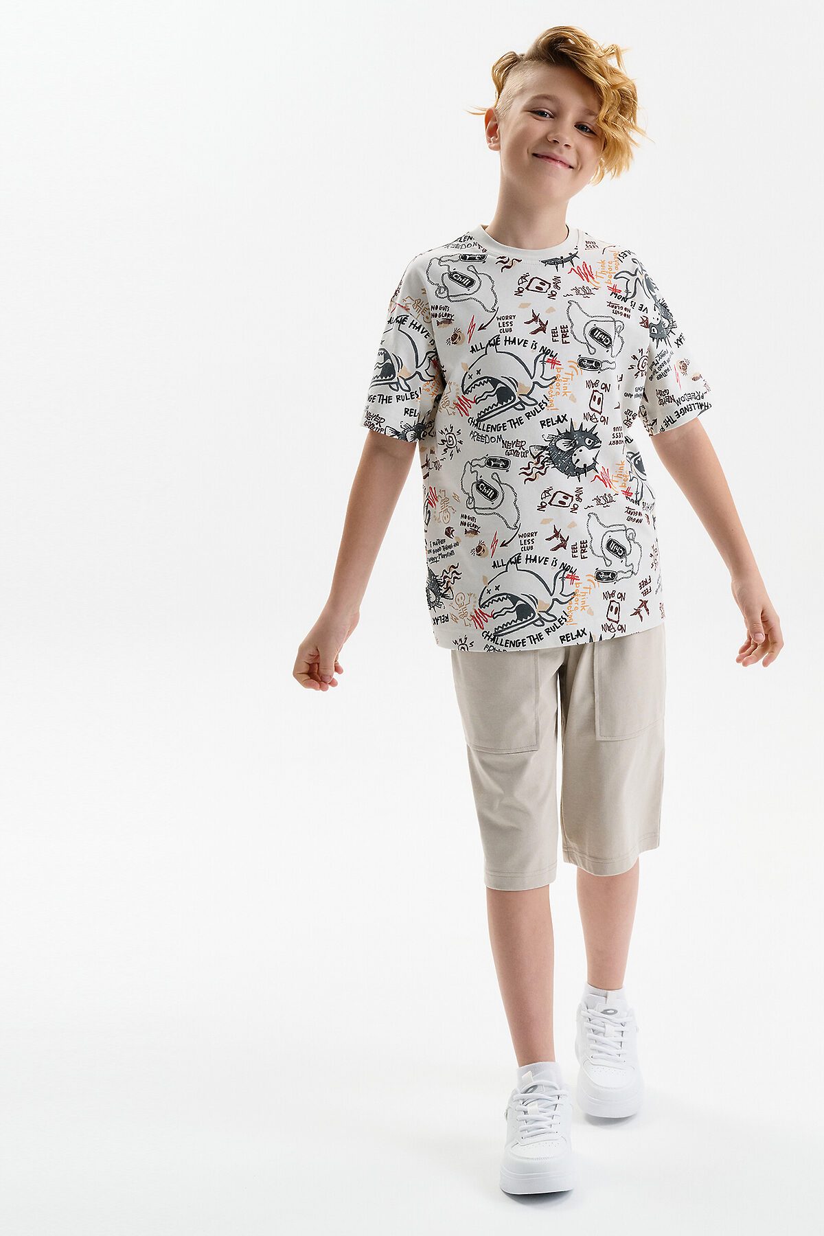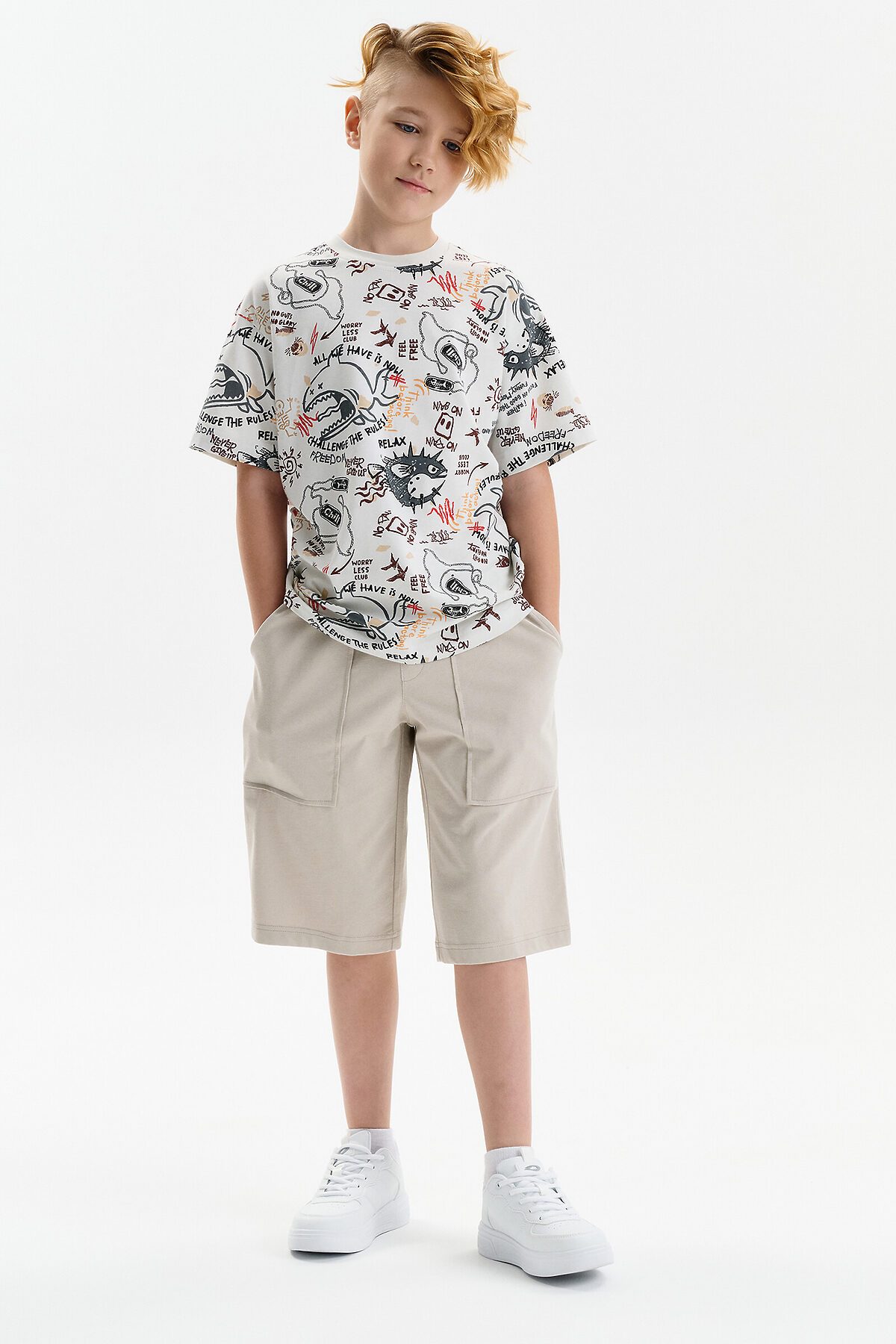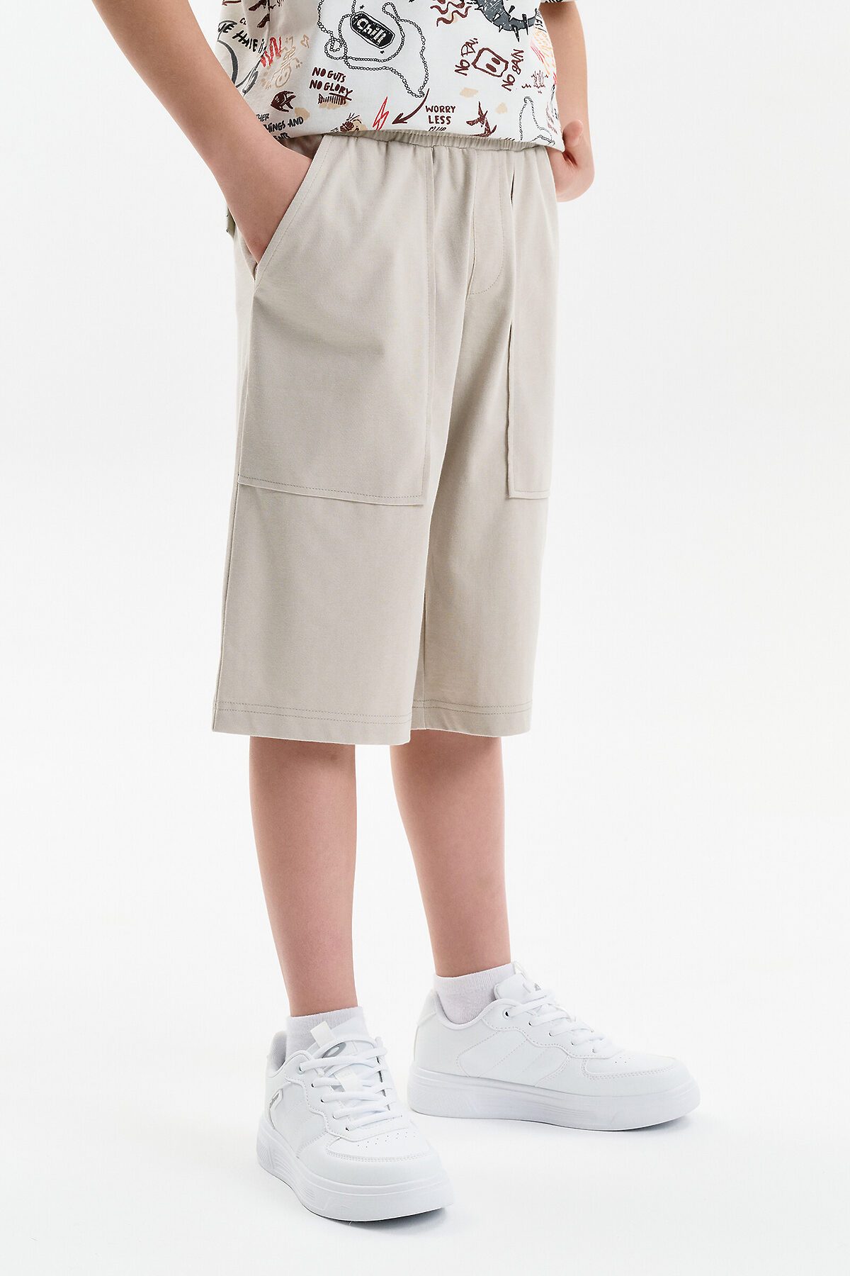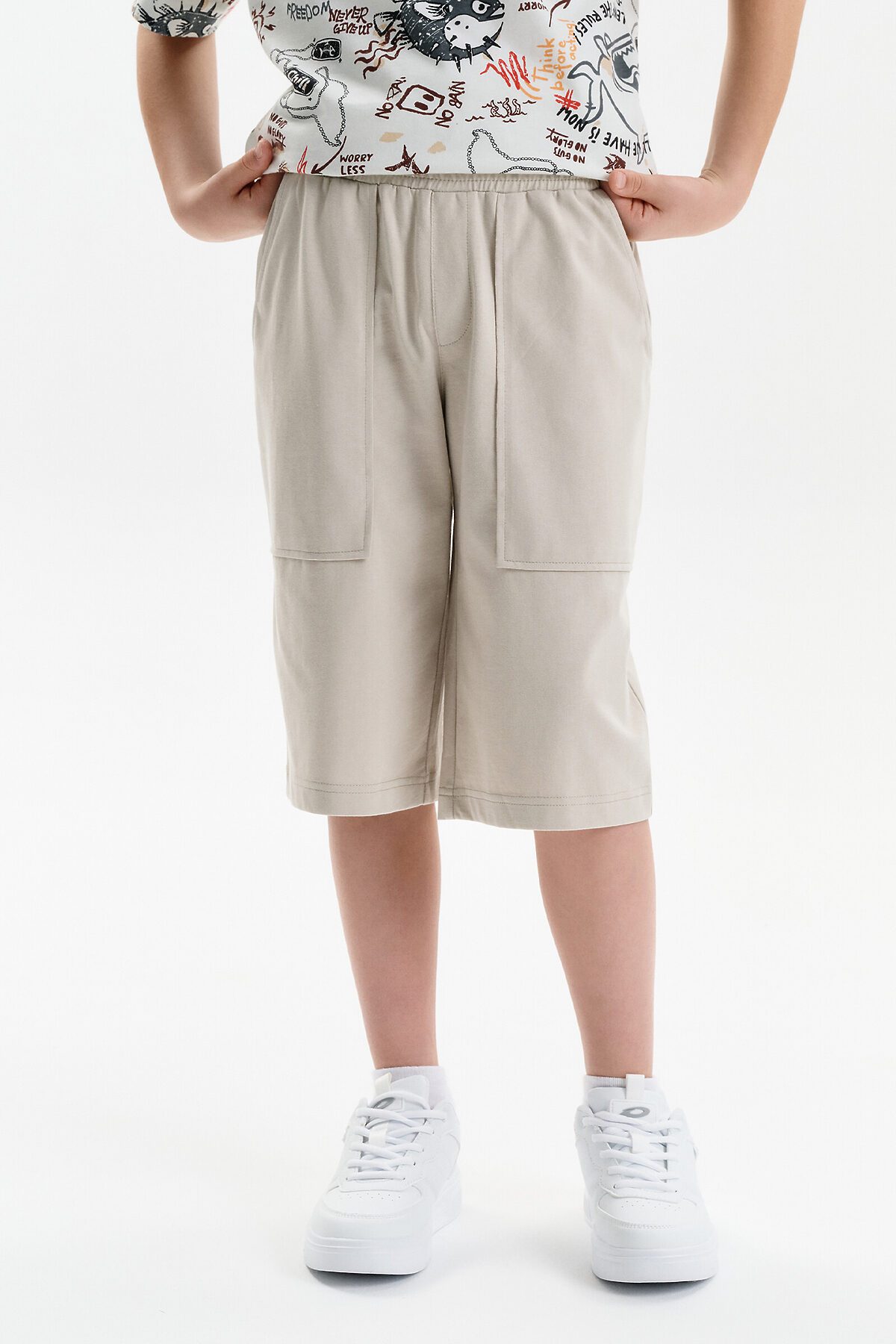 Шорты бермуды для мальчика летние. Модель объемного силуэта, свободная (оверсайз), удлиненная. Широкий эластичный пояс без давления, не впивается. Внутренний шнур позволяет регулировать объём по талии. Спереди два больших кармана.