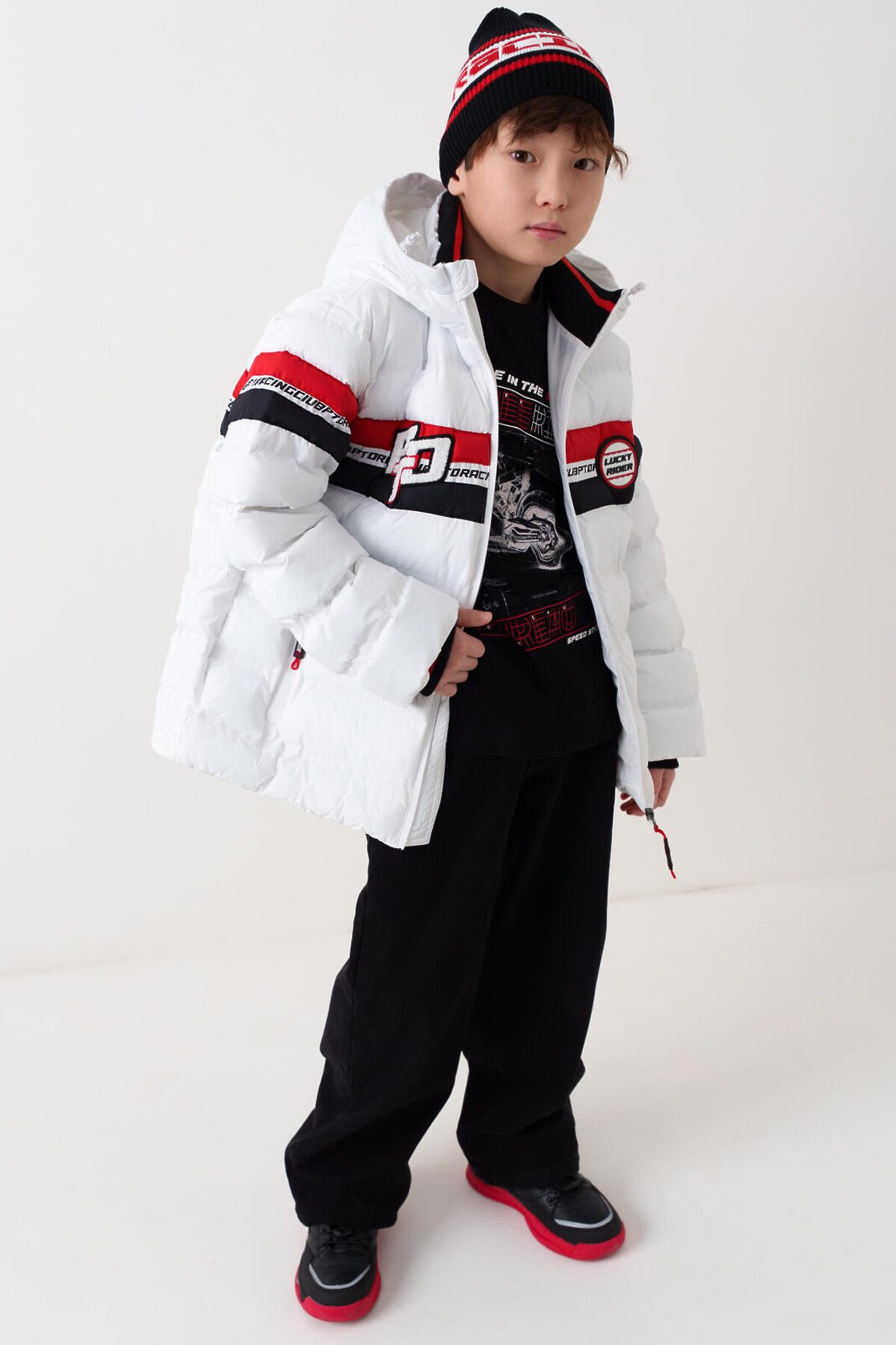 Куртка текстильная с полиуретановым покрытием для мальчиков PLAYTODAY, белый,черный,красный