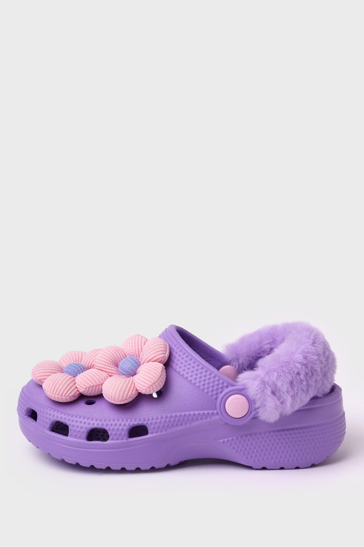 Оригинальное сабо для девочки. Сабо из облегченного и прочного ЭВА. Модель декорирована объемными текстильными джибицами-цветами.. Материал хорошо моется. Форма модели учитывает эргономику стопы. Модель имеет перекидной ремешок для лучшей фиксации обуви на ноге. Ремешок имеет модную меховую отделку, которую при желании можно снять, так как ремешок отстегивается *Размер на подошве может отличаться от этикетки. Сверяйтесь с информацией на этикетке.