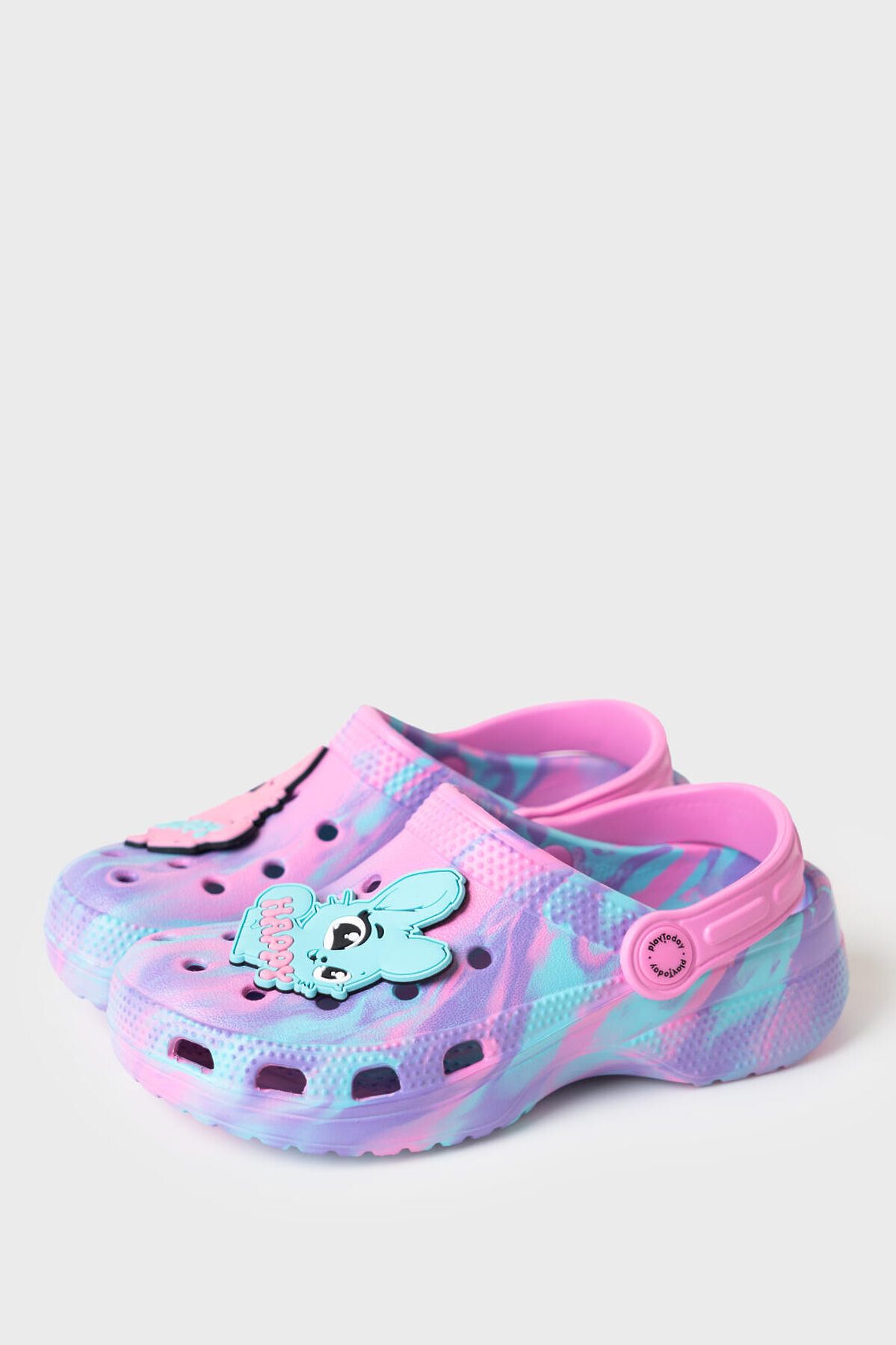 Оригинальное сабо для девочки. Сабо из облегченного и прочного ЭВА с градиентным окрашиванием и патчами котенком и зайчонком. Материал хорошо моется. Форма модели учитывает эргономику стопы. Модель имеет перекидной ремешок для лучшей фиксации обуви на ноге. *Размер на подошве может отличаться от этикетки. Сверяйтесь с информацией на этикетке.