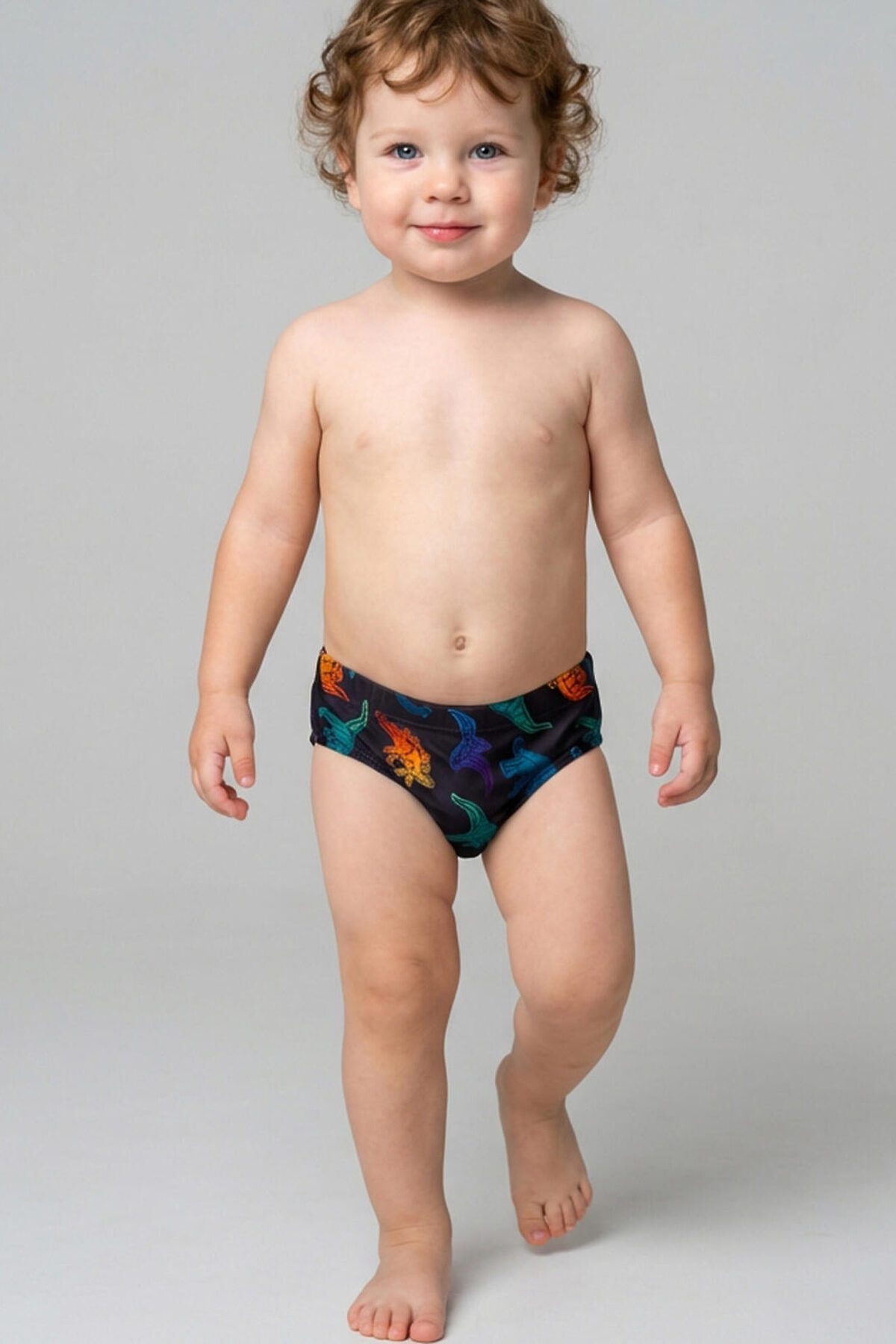 Плавки детские, прилегающего силуэта для мальчика. Изготовлены из эластичного трикотажа, с подкладкой для большего комфорта. Ткань устойчива к солнцу и солёной воде, благодаря UF-защите сохраняет насыщенность цвета и структуру волокон. В поясе — удобная резинка и регулируемый шнурок.