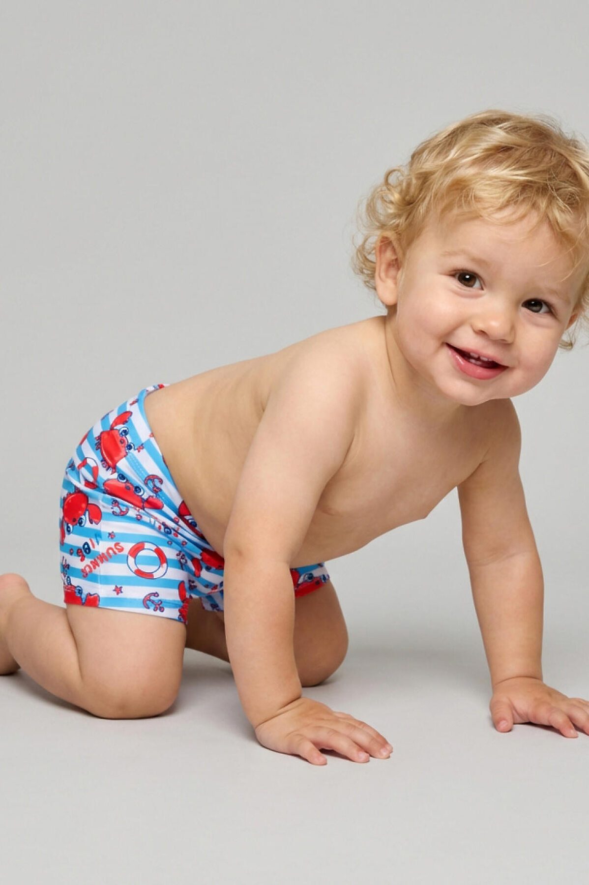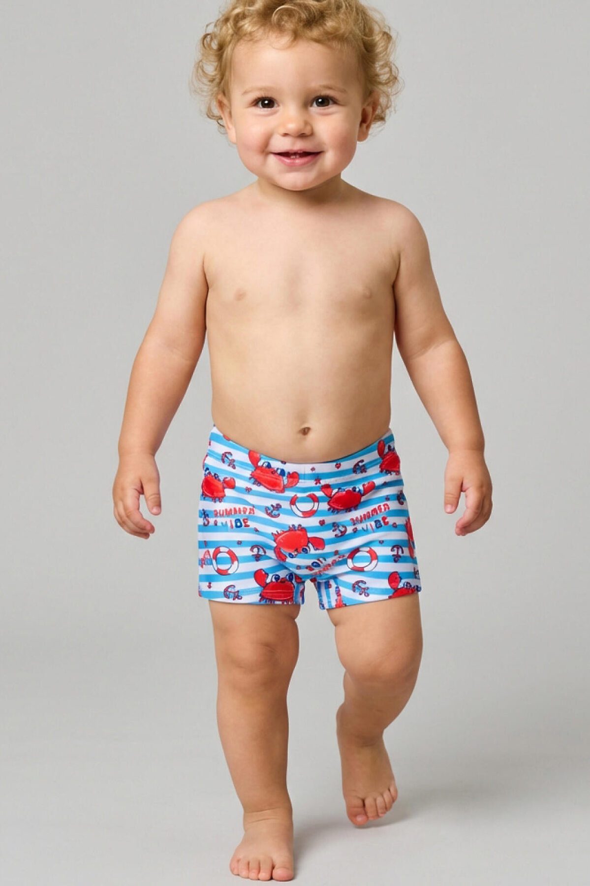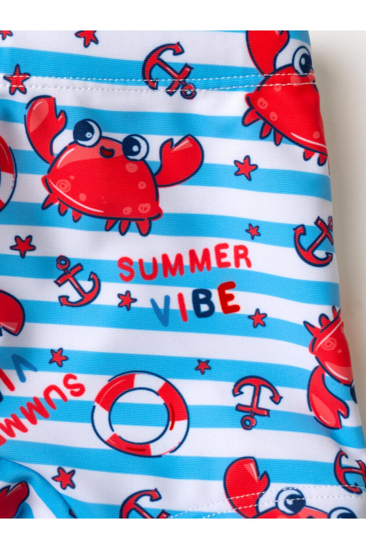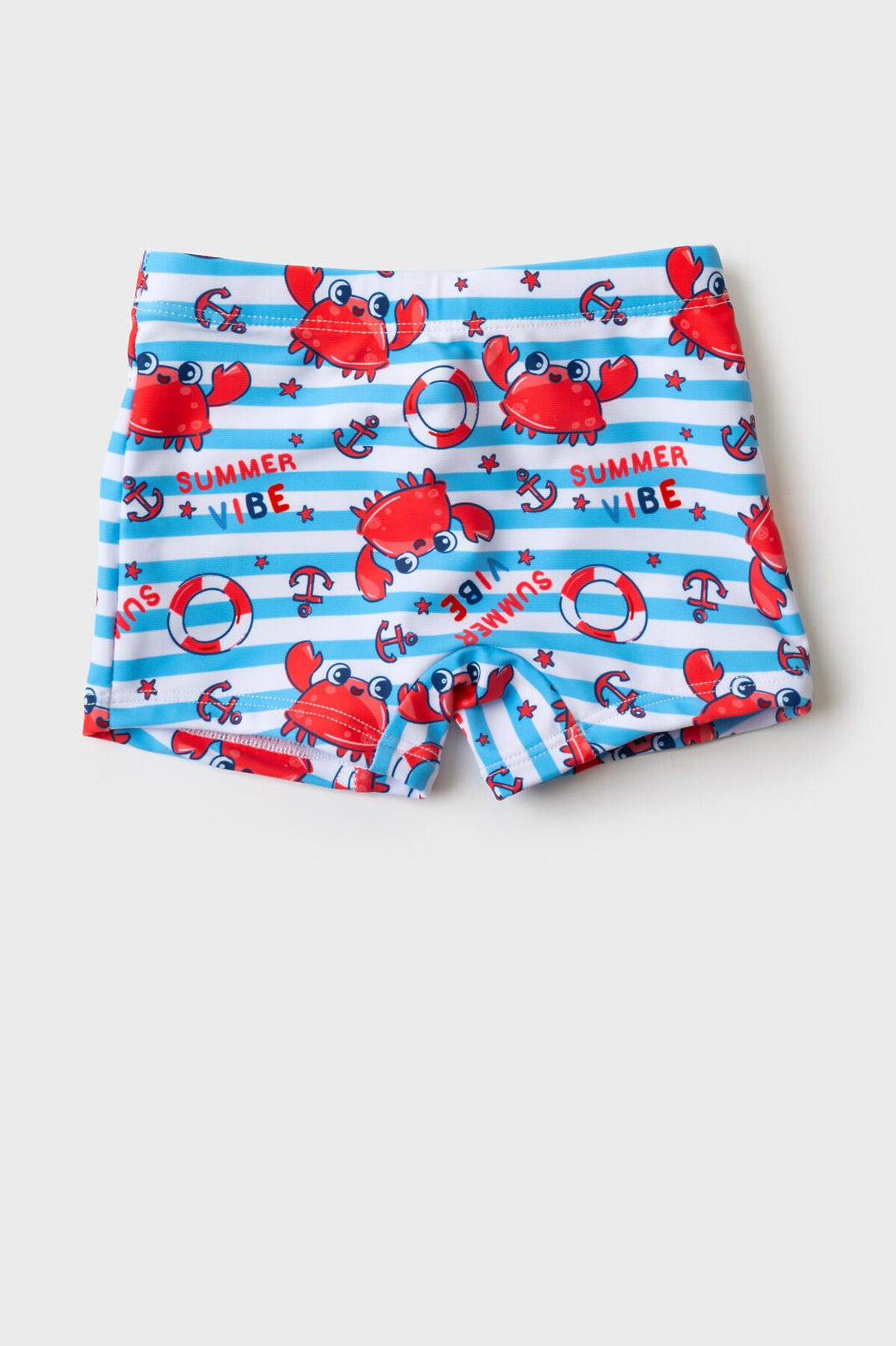 Плавки-шорты детские средней длины, прилегающего силуэта для мальчика. Изготовлены из эластичного трикотажа, с подкладкой для большего комфорта. Ткань устойчива к солнцу и солёной воде, благодаря UF-защите сохраняет насыщенность цвета и структуру волокон. В поясе — удобная резинка и регулируемый шнурок.