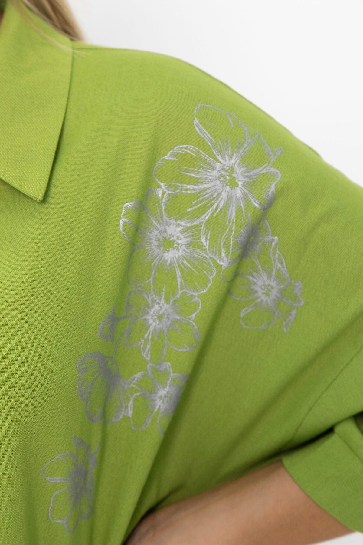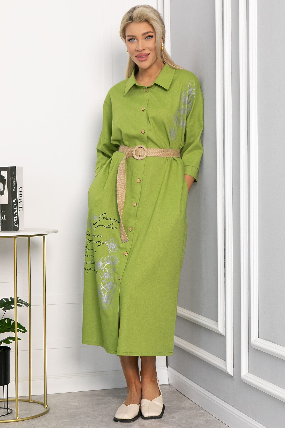 Платье-рубашка свободного кроя в оттенке «зеленое яблоко» — это идеальный выбор для тех, кто ценит комфорт и стиль. Его удобный фасон делает его универсальным для повседневной носки и активного отдыха. Свободный крой не стесняет движений, позволяя вам чувствовать себя комфортно и уверенно в любой ситуации. Талию можно подчеркнуть поясом, который идет в комплекте.