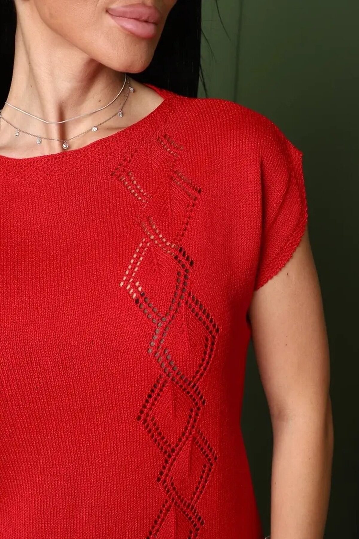 Футболка летняя вязаная - настоящая находка для ценителей стильных и комфортных вещей. Ее ажурная отделка придает изысканный вид, добавляя немного ретро-стиля в ваш образ. Модный дизайн делает базовую футболку универсальной для любого случая - будь то вечерние прогулки или праздничные мероприятия. Нарядная футболка с приталенной посадкой замечательно впишется в образ любой модницы. Однотонная футболка с вырезом лодочка станет замечательным подарком на любой праздник. Большие размеры и удобный свободный крой делают эту оверсайз футболку идеальным выбором как для беременных, так и для высоких и невысоких женщин. Классическая футболка с длинной посадкой и авторским рисунком в виде ромбов подойдет для офиса, школы и для домашнего отдыха. Она подходит для девушек и женщин всех возрастов.
