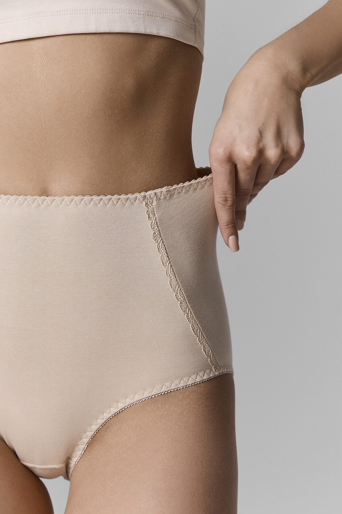 Корректирующие трусики с высокой посадкой, выполненные из великолепного хлопкового полотна с добавлением эластана. Деликатно утягивают проблемные зоны, формируя элегантный женственный силуэт. На поясе и по ножкам – эластичная тесьма. Шарма добавляют кружевные детали, а универсальности – базовая расцветка.
