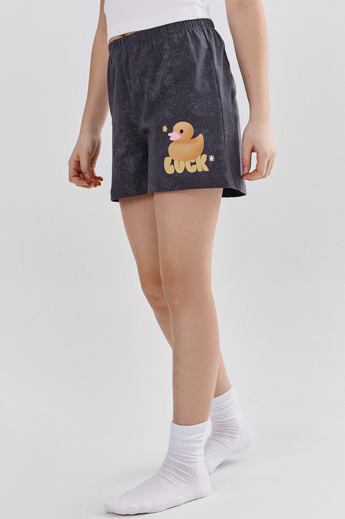 Шорты для девочек домашние MARK FORMELLE, серый acid wash +печать