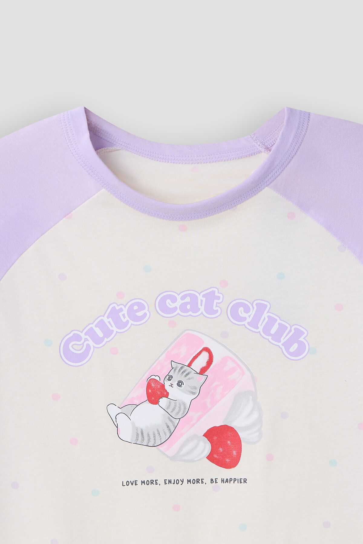 Сорочка прямого силуэта. Горловина круглой формы с обтачкой из основного полотна обработана 3 игольной плоской строчкой с верхним застилом. Рукав реглан, короткий. Низ изделия и рукавов обработан 3 игольной плоской строчкой с верхним застилом.